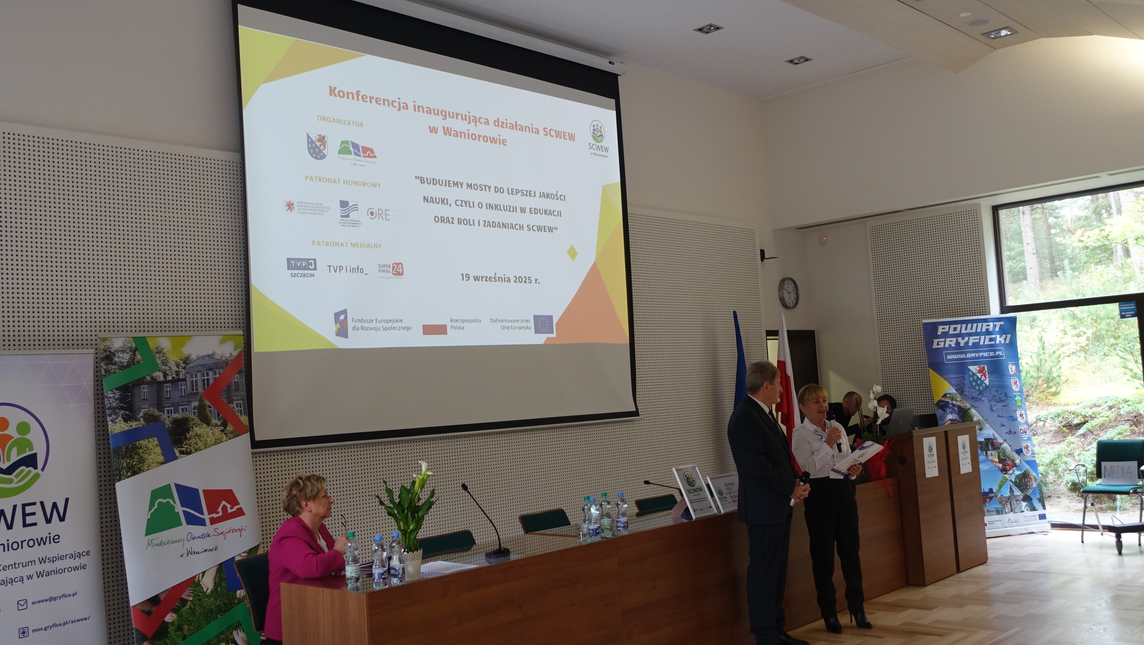 Wydarzenie rozpoczęło się o godzinie 10:00 i odbywa się pod nazwą „Budujemy mosty do lepszej jakości nauki, czyli o inkluzji w edukacji oraz roli i zadaniach SCWEW”. Projekt realizowany będzie w ramach Funduszy Europejskich. Powiat Gryficki otrzymał na ten cel dofinansowanie.