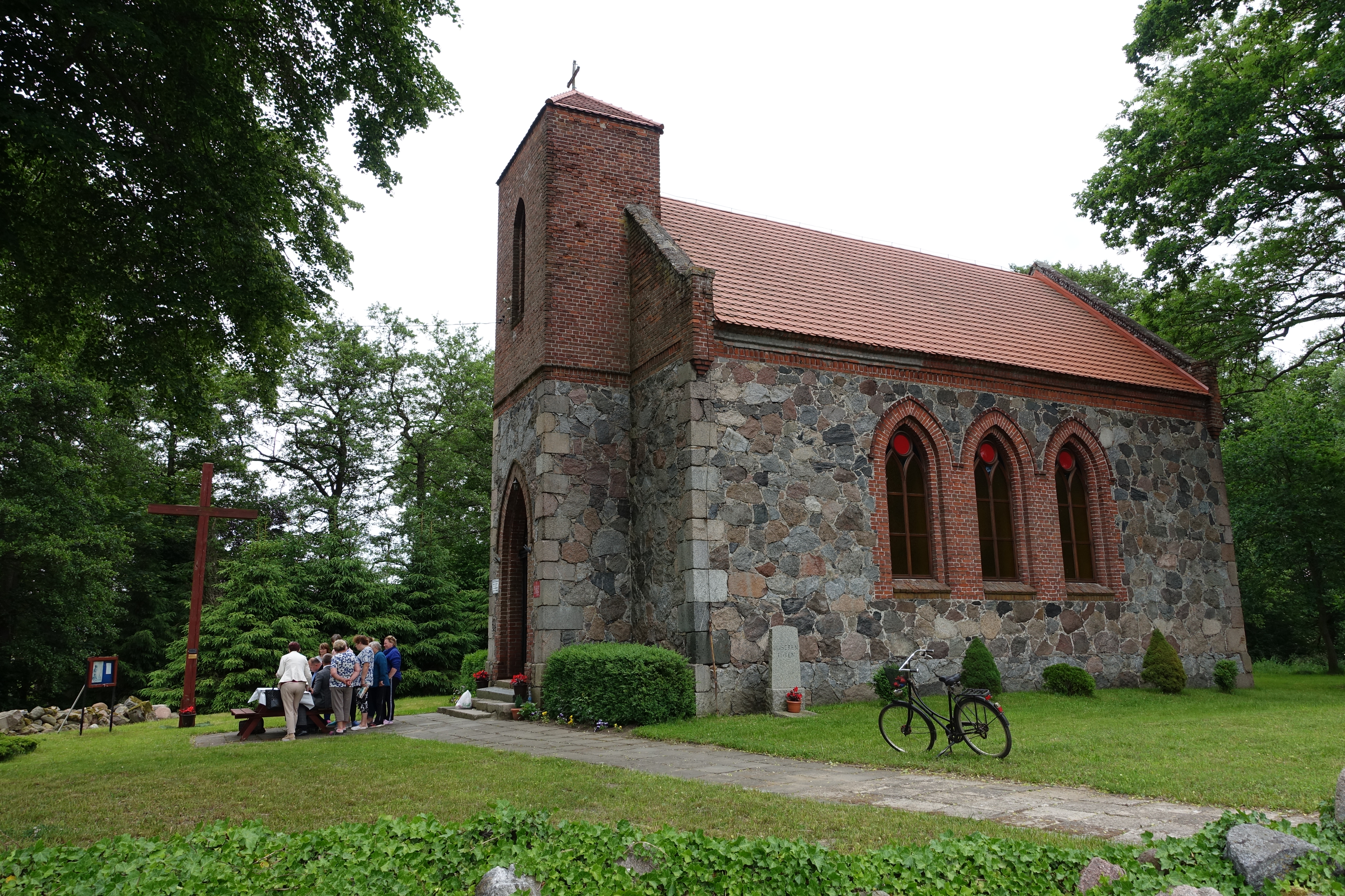 Kościół ten zbudowany został w XIX w. z głazów narzutowych, wzniesiono go na miejscu świątyni drewnianej średniowiecznej, a w obrządku katolickim świątynię poświęcono 1 czerwca 1970 r. i podporządkowano parafii MB Różańcowej w Żabowie.