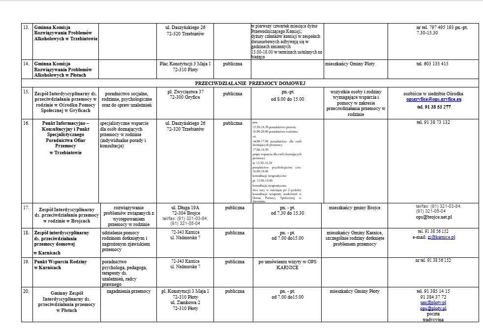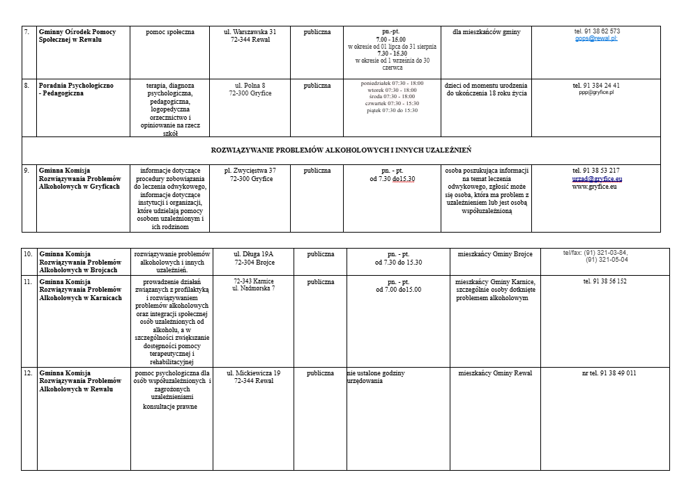 Lista jednostek nieodpłatnego poradnictwa dostępnego dla mieszkańców powiatu gryfickiego.
