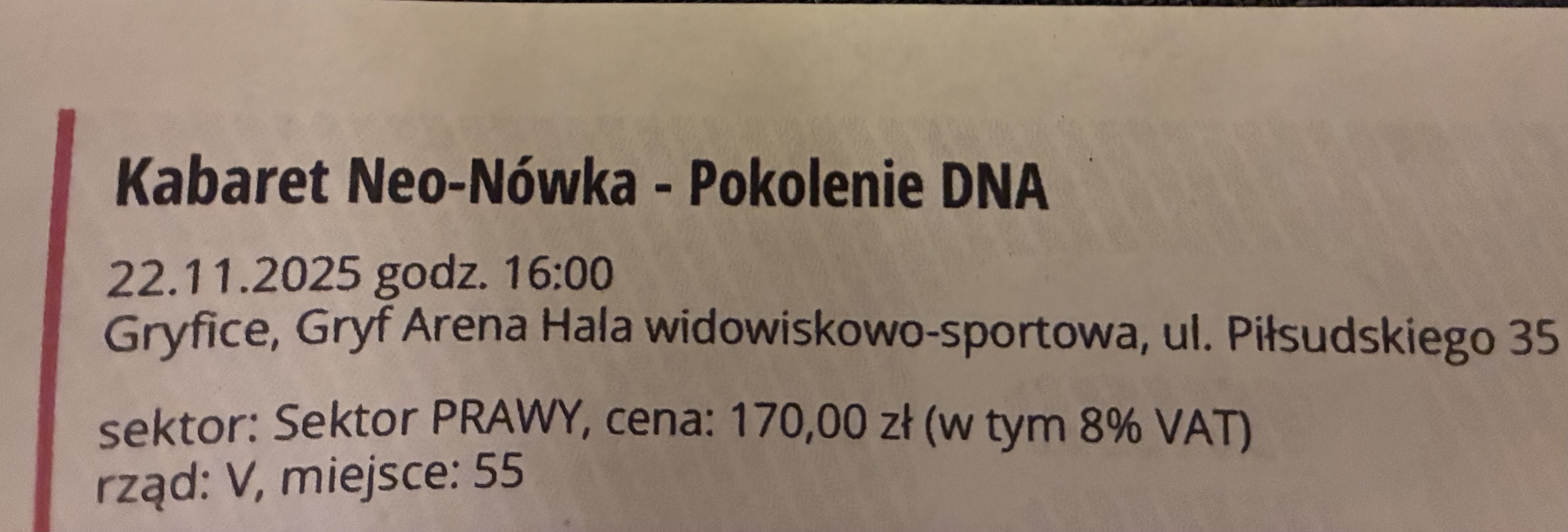 Witam w związku z brakiem możliwości wzięcia udziału w imprezie, odsprzedam 3 bilety (miejsca 55-57) na Kabaret Neo-Nówka- Pokolenie DNA. Impreza Gryfice Gryf Arena 22.11.2025.