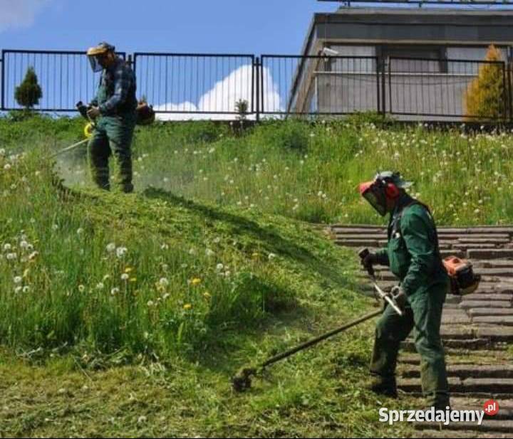 Koszenie trawy profesjonalną kosiarką z koszem lub kosą w przypadku wysokich traw