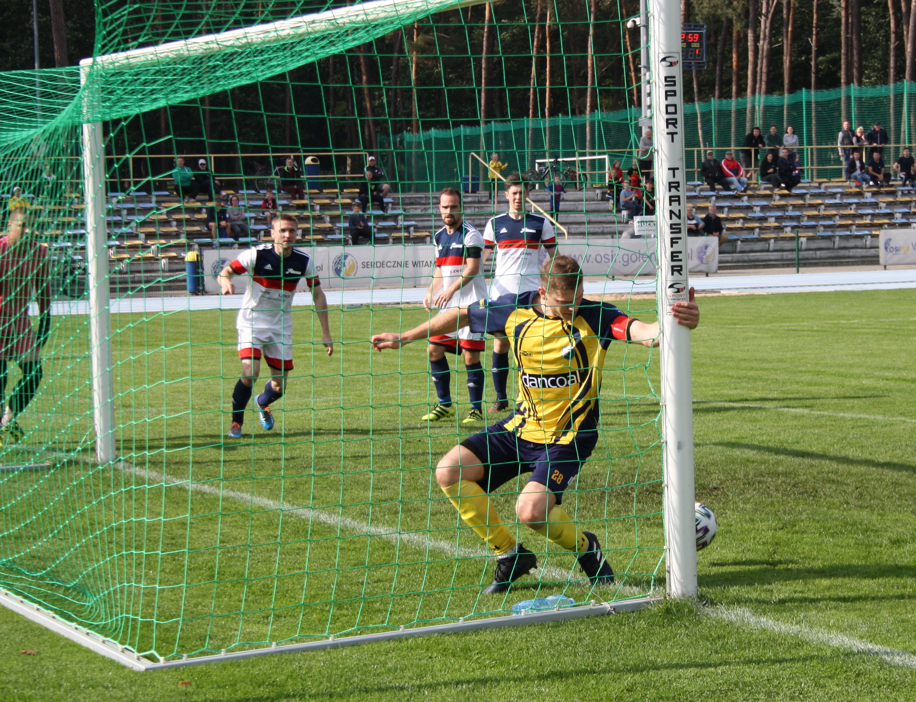 W 48 minucie gospodarze podwyższyli prowadzenie na 3:1, choć mało brakowało, a Piotr Winogrodzki nie wbiłby piłki do pustej bramki z odległości niespełna metra (co można zobaczyć w naszej fotorelacji). Na szczęście jednak zdołał powtórzyć próbę i wpisał się na listę strzelców. Pięć minut później goście zdobyli bramkę kontaktową, która okazała się ostatnim golem w tym meczu i to Ina Goleniów cieszyła się z zainkasowania trzech punktów.