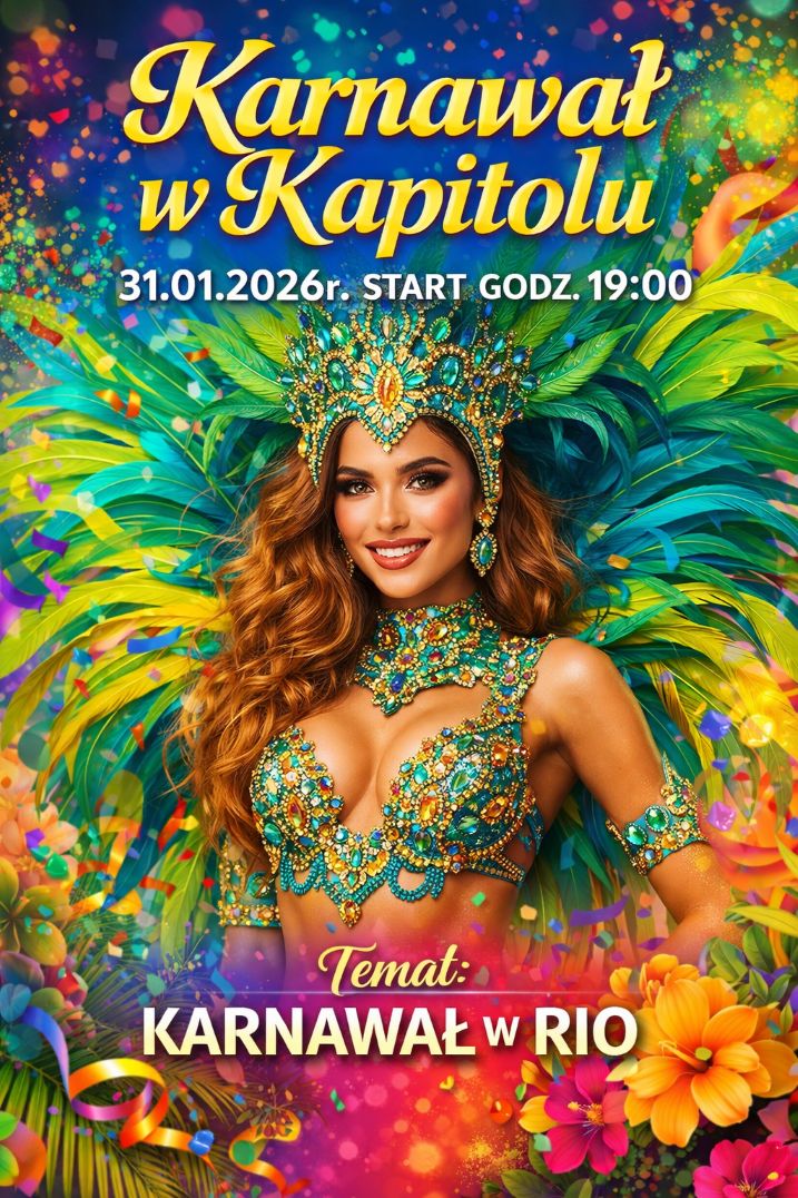 Na tym nie koniec tanecznych emocji. 31 stycznia 2026 r. Kapitol zamieni się w roztańczone Rio de Janeiro. Karnawał „Rio w Kapitolu” to eksplozja kolorów, rytmu i południowoamerykańskiej energii.
