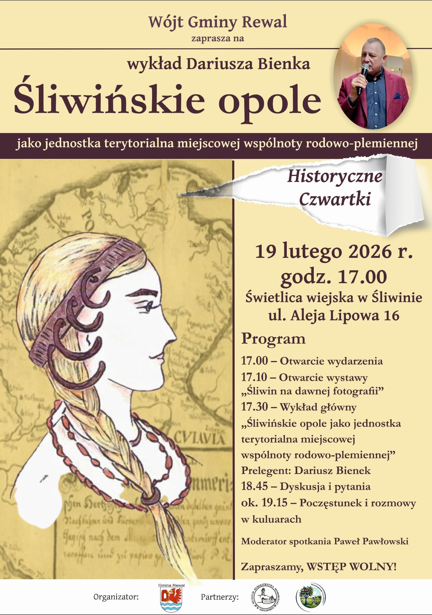 Gościem spotkania będzie Gryficzanin, regionalista i pasjonat historii Dariusz Bienek, który wygłosi wykład z pokazem multimedialnym pt. „Śliwińskie opole jako jednostka terytorialna miejscowej wspólnoty rodowo-plemiennej”. Podczas wydarzenia nastąpi również otwarcie wystawy historycznych fotografii dokumentujących przeszłość Śliwina.