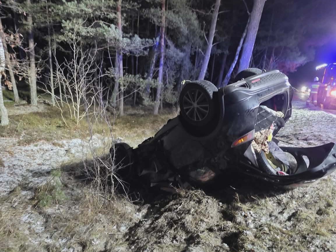 Do kolejnego groźnego zdarzenia na drodze doszło dziś wieczorem w okolicach Rogowa w gminie Trzebiatów. Samochód osobowy wypadł z trasy i dachował. Poszkodowany został młody mężczyzna.