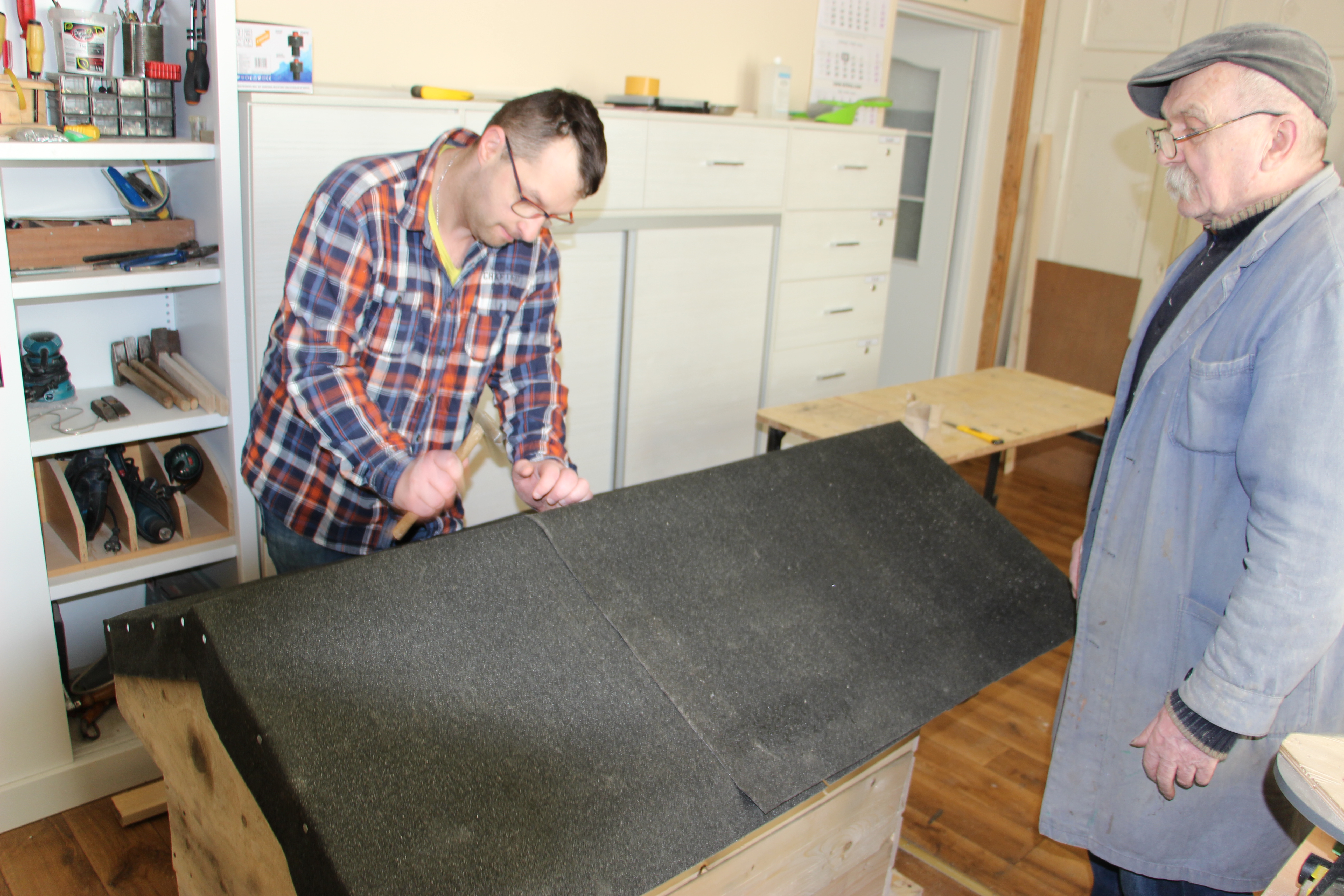 Podopieczni Polskiego Stowarzyszenia na rzecz Osób z Niepełnosprawnością Intelektualną Koło w Trzebiatowie pod nadzorem Kazimierza Maguńskiego wykonali nowe budy dla czasowo przebywających psów w ZDGiGK w Trzebiatowie.