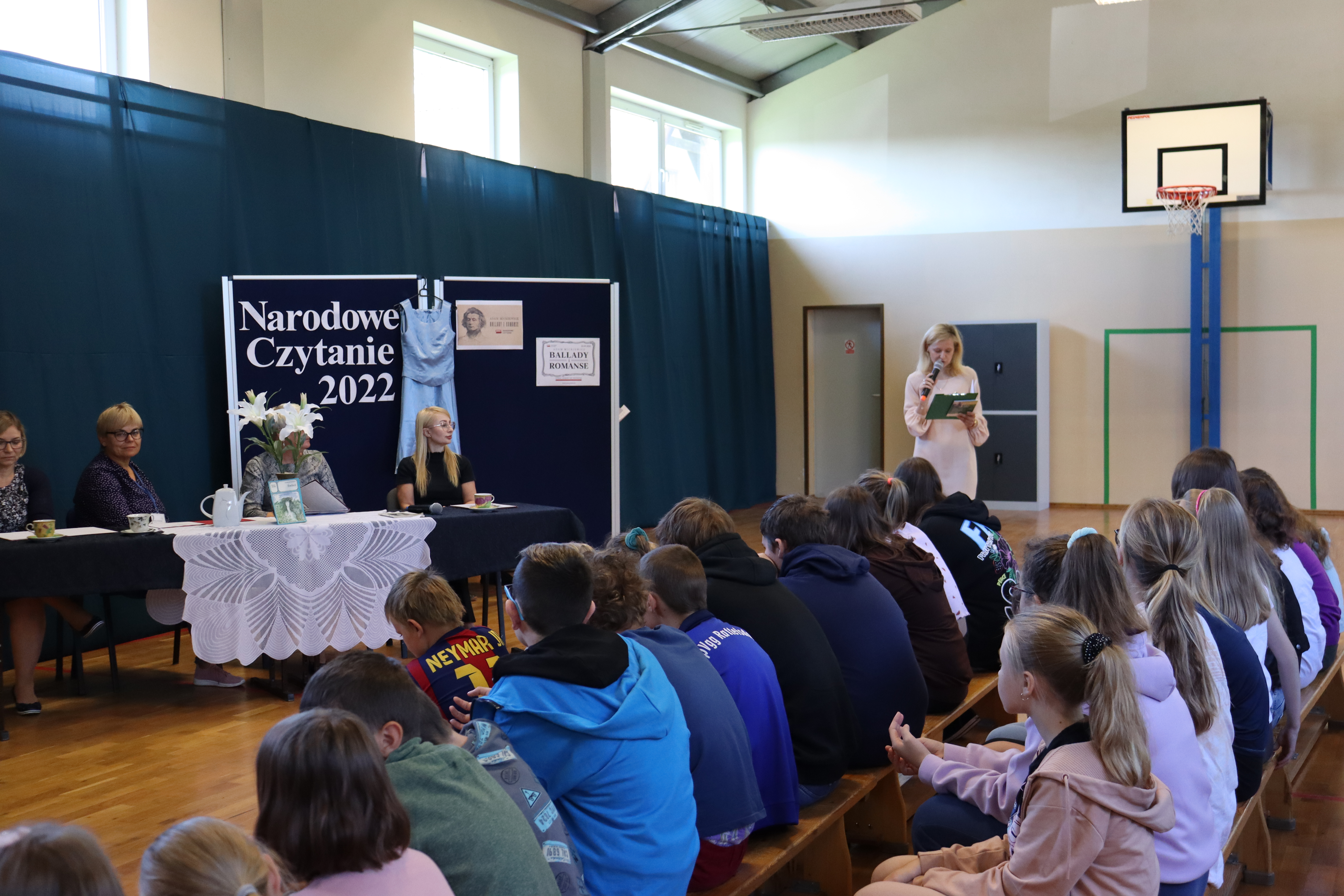 Spotkanie z utworami Mickiewicza poprowadziła pani Anna Misikonis, która w sposób niezwykle ciekawy przedstawiła podstawowe informacje o naszym Wieszczu i jego sławnych utworach, a następnie udzieliła głosu wybranym nauczycielom, którzy odczytali ballady: Romantyczność, Świteziankę, Trzech Budrysów, Panią Twardowską i Lilije. Całość dopełniły występy uczniów z klasy V i VIII, którzy w sposób zabawny zademonstrowali współczesne wersje dwóch utworów: Świtezianki i Pani Twardowskiej.