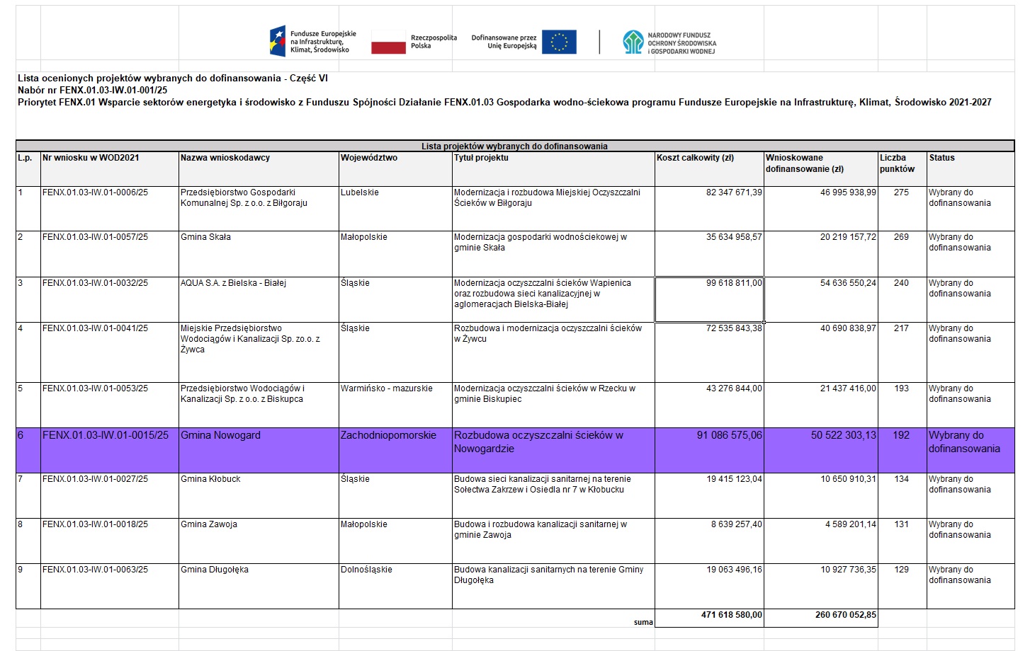 Środki w wysokości 50 522 303,13 zł zostały przyznane decyzją Narodowy Fundusz Ochrony Środowiska i Gospodarki Wodnej w ramach programu Fundusze Europejskie na Infrastrukturę, Klimat i Środowisko 2021–2027.