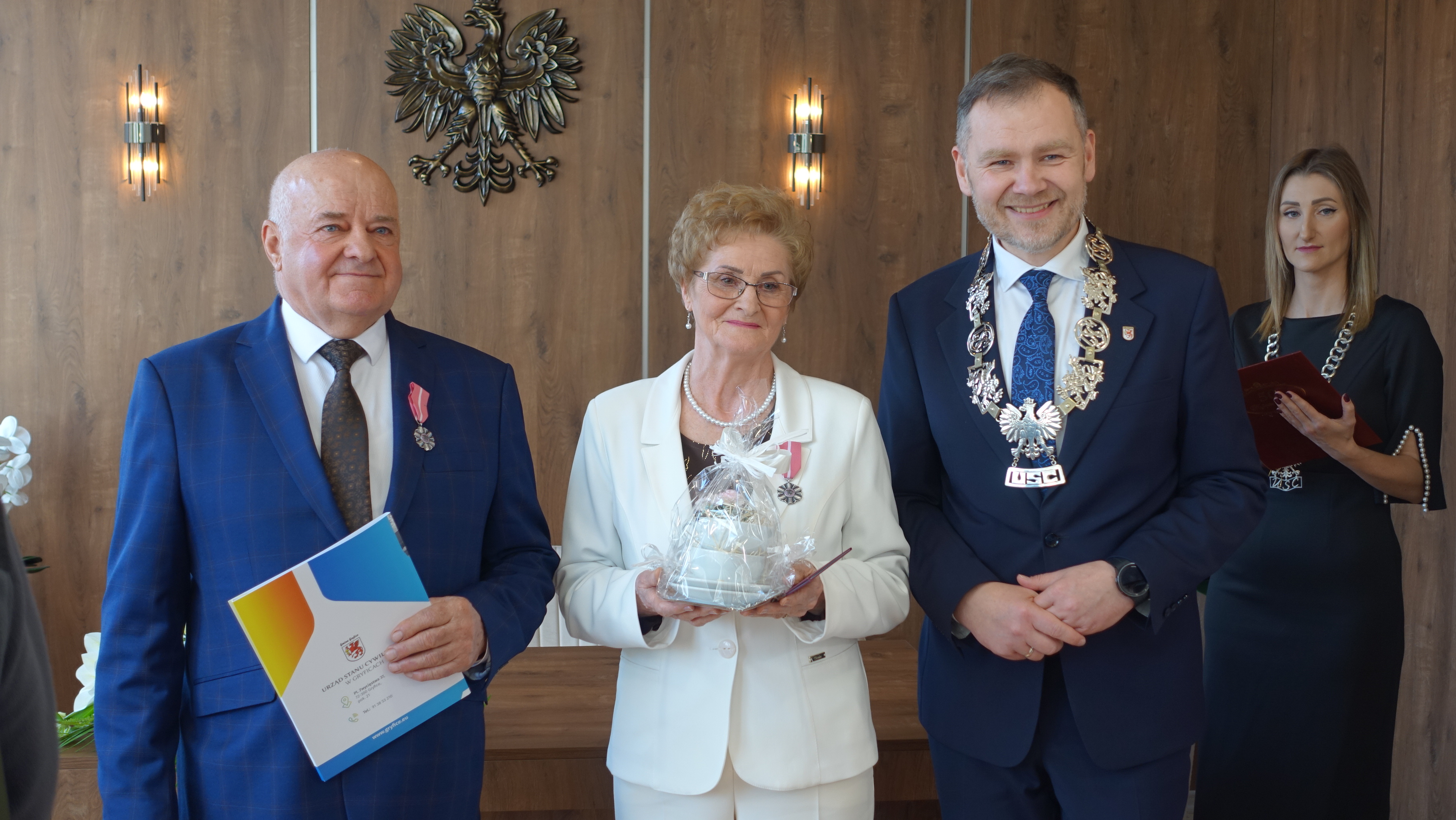 Dziś w Urzędzie Miejskim w Gryficach odbyła uroczystość poświęcona parom świętującym 50-lecie pożycia małżeńskiego. Medale przyznane przez Prezydenta Rzeczypospolitej Polskiej wręczył jubilatom burmistrz Gryfic Tomasz Aniuksztys. Łącznie uhonorowano osiem par, które wspólnie przeżyły pół wieku.