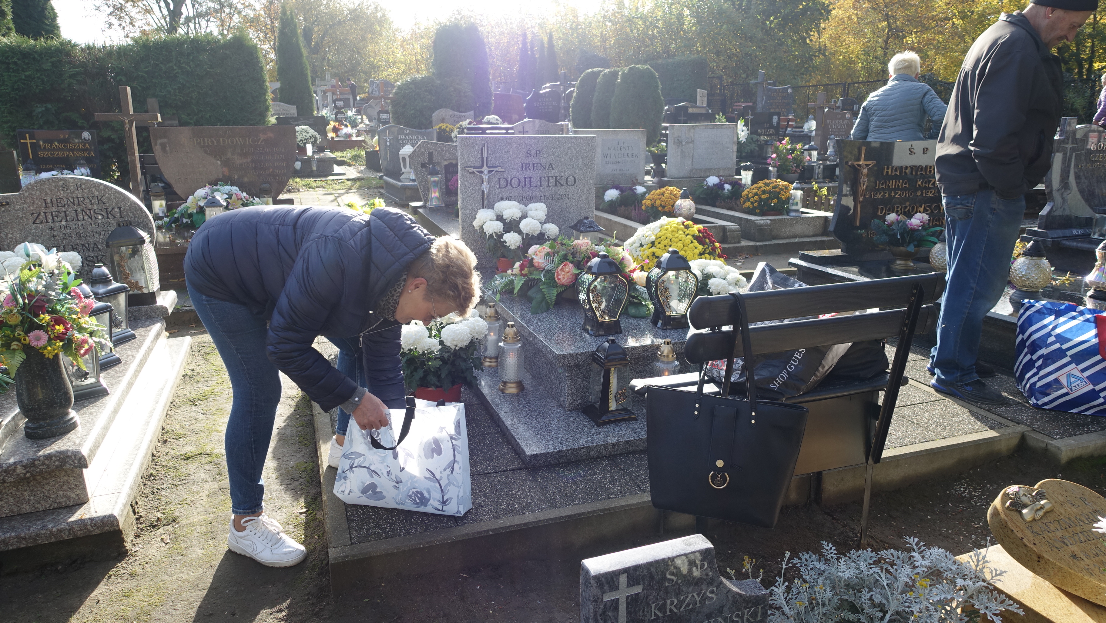 Pogoda dziś dopisuje. Mieszkańcy ruszyli na cmentarz i sprzątają groby swoich bliskich przed jutrzejszą uroczystością.