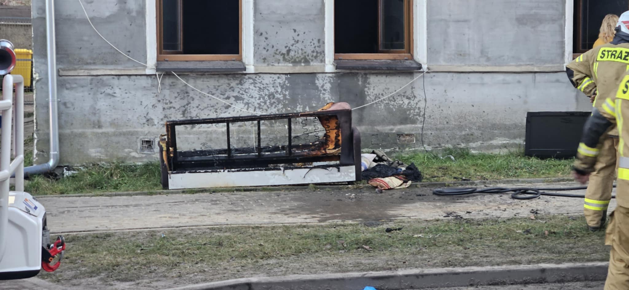 Tuż po godzinie 15 służby ratunkowe zostały wezwane do pożaru w jednym z mieszkań budynku wielorodzinnego przy ulicy Grunwaldzkiej w Płotach. Ogień pojawił się w lokalu znajdującym się na parterze i objął elementy wyposażenia wnętrza.