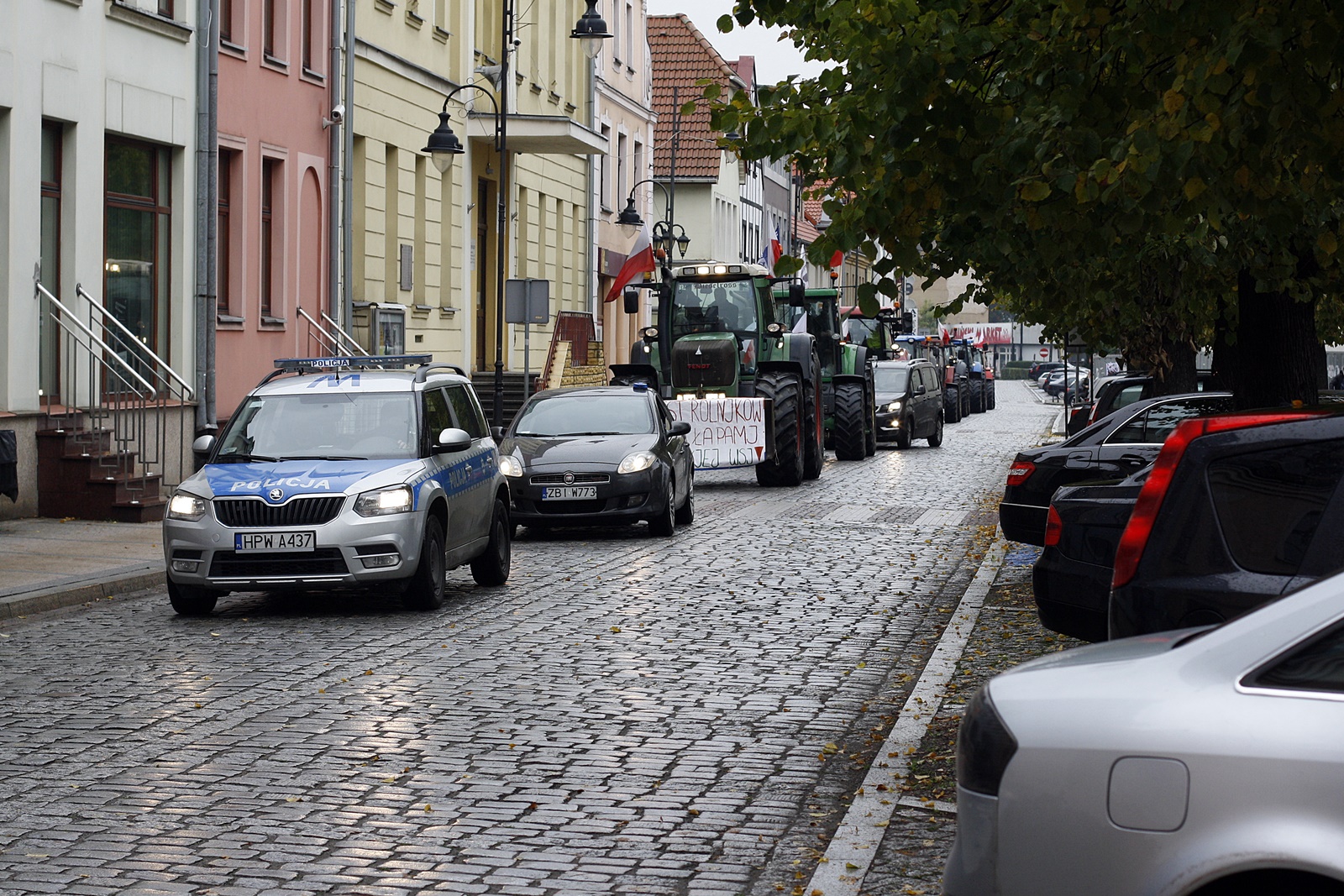 - Nie chcieliśmy nikomu przeszkadzać, zapowiadaliśmy, że będziemy współpracować z kierowcami. Chcemy jedynie, aby nasz głos został usłyszany – podkreślali rolnicy. Już wcześniej przed biurami poselskimi, partii, które poparły tzw „piątkę dla zwierząt” ustawione zostały snopki siana i taczki z gnojówką. - To nasz krzyk rozpaczy – wyjaśniali protestujący. Rolnicy gromadzący się na ulicy Paskowej w Trzebiatowie byli legitymowani przez policjantów, którzy zmobilizowani zostali w znacznej sile. - Są tu policjanci chyba z całego województwa. Jeszcze nigdy nie widzieliśmy tylu funkcjonariuszy. Prowadzą czynności, legitymują, wystawiają mandaty – wyliczali rolnicy. - Kolega dostał mandat, za to, że wyskoczył z kabiny bez maseczki. Możliwe, że nie zdążył jej ubrać. Jednak widzimy, że nie wszyscy policjanci mają odpowiednio zakrytą twarz. I co? Oni mogą – podkreślali. Po blisko godzinnym opóźnieniu ciągniki przejechały przez Trzebiatów, a następnie udały się do Gryfic. Tam spotkać mieli się z rolnikami z Płotów i Brojc, którzy również zostali spisani przez stróżów prawa. Ostatecznie rolnicy przejechali wokół Placu Zwycięstwa.
