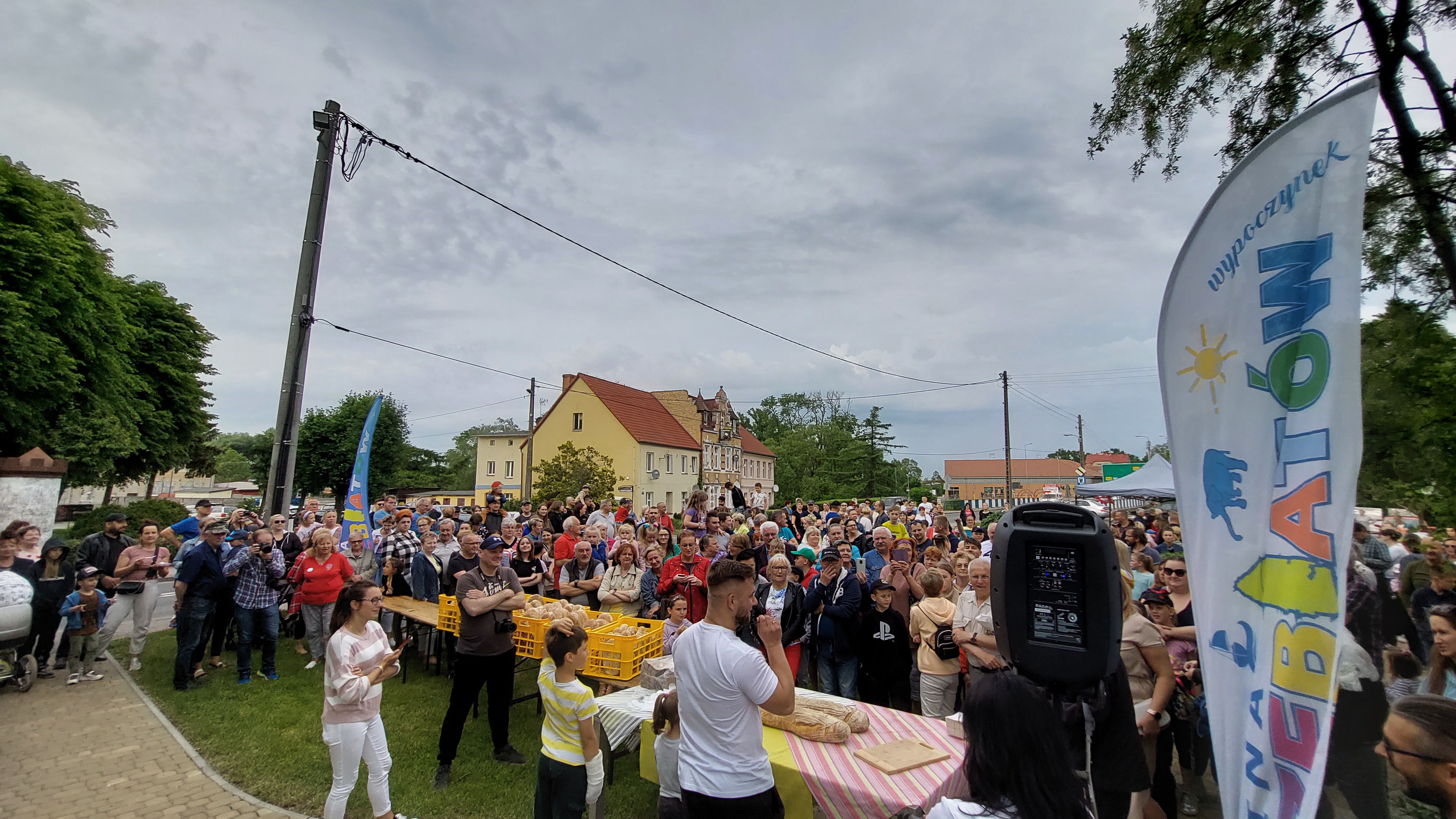 Dzisiaj o godzinie 18:00 rozpoczęło się spotkanie mieszkańców Trzebiatowa z Jackiem Wiarkiem – piekarzem z Zabrza, który wraz z rodziną przybył do Trzebiatowa, by podzielić się swoimi rzemieślniczymi wypiekami.