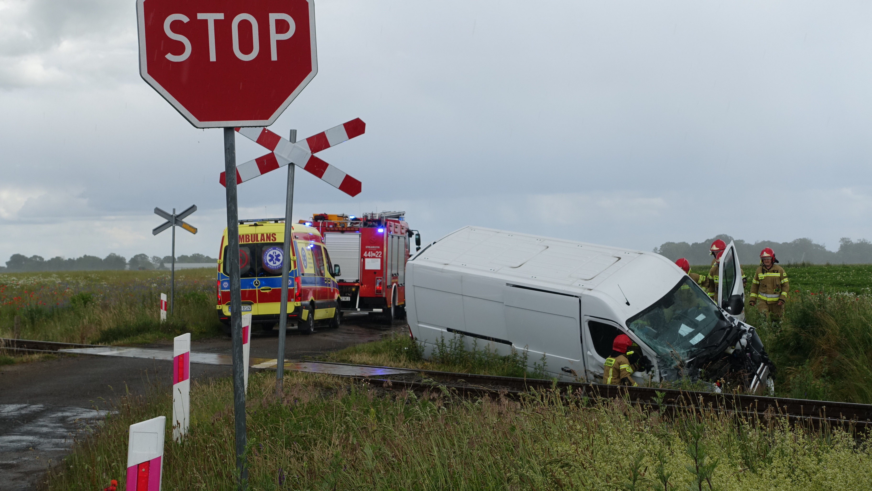 O krok od tragedii na przejeździe kolejowym w okolicach Górzycy (gmina Gryfice). Samochód dostawczy jadący od strony Borzęcina zderzył się z pociągiem.