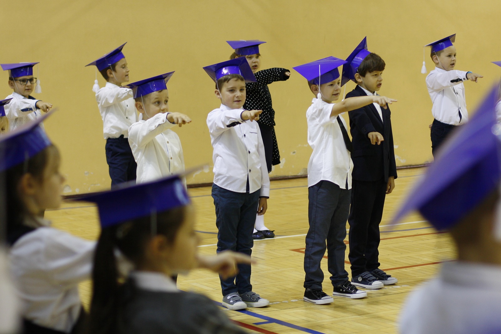 W cieniu koronawirusa...? U nas tez było pasowanie, ale dzieci nie spotykały się wspólnie z innymi klasami na sali. Bardzo pięknie świętowały w swojej klasie z wychowawczynią i Panią dyrektor. 🙂
