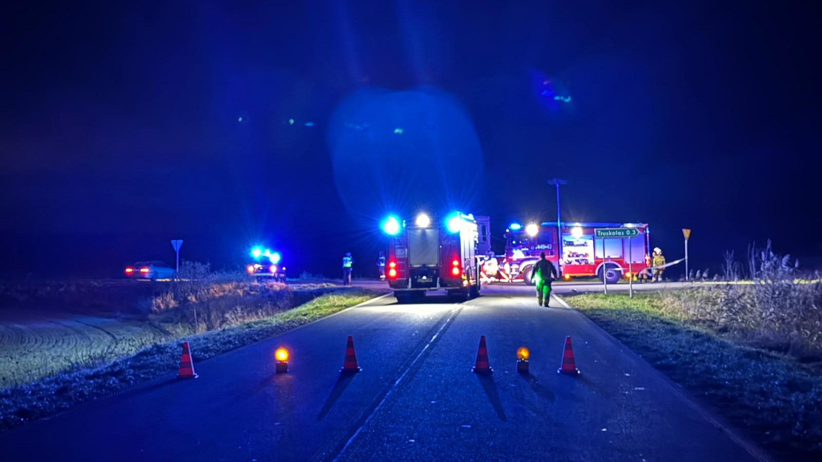 Zdarzenie miało miejsce poza obszarem zabudowanym, na skrzyżowaniu w nieoświetlonym miejscu. Droga jest zablokowana.
