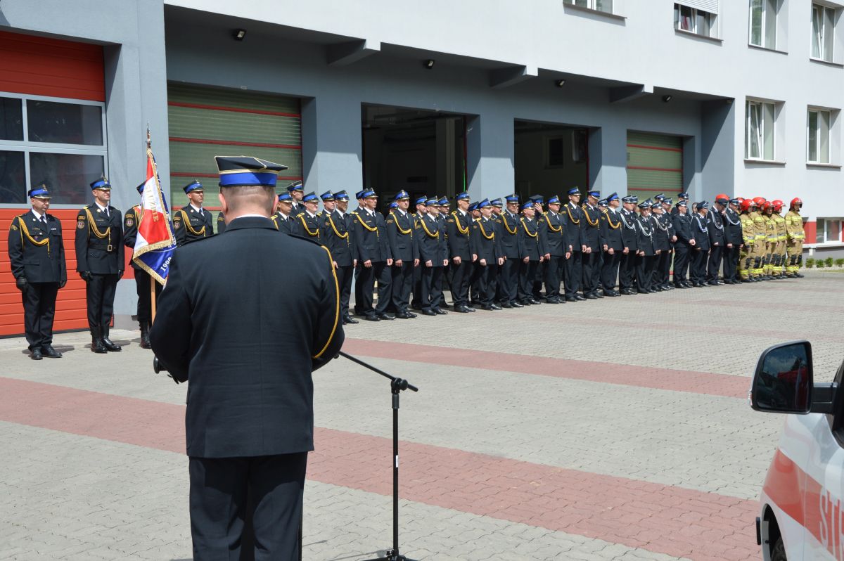 Na placu przed Komendą Powiatową Państwowej Straży Pożarnej odbyły się dzisiaj powiatowe obchody 30. rocznicy utworzenia PSP.
