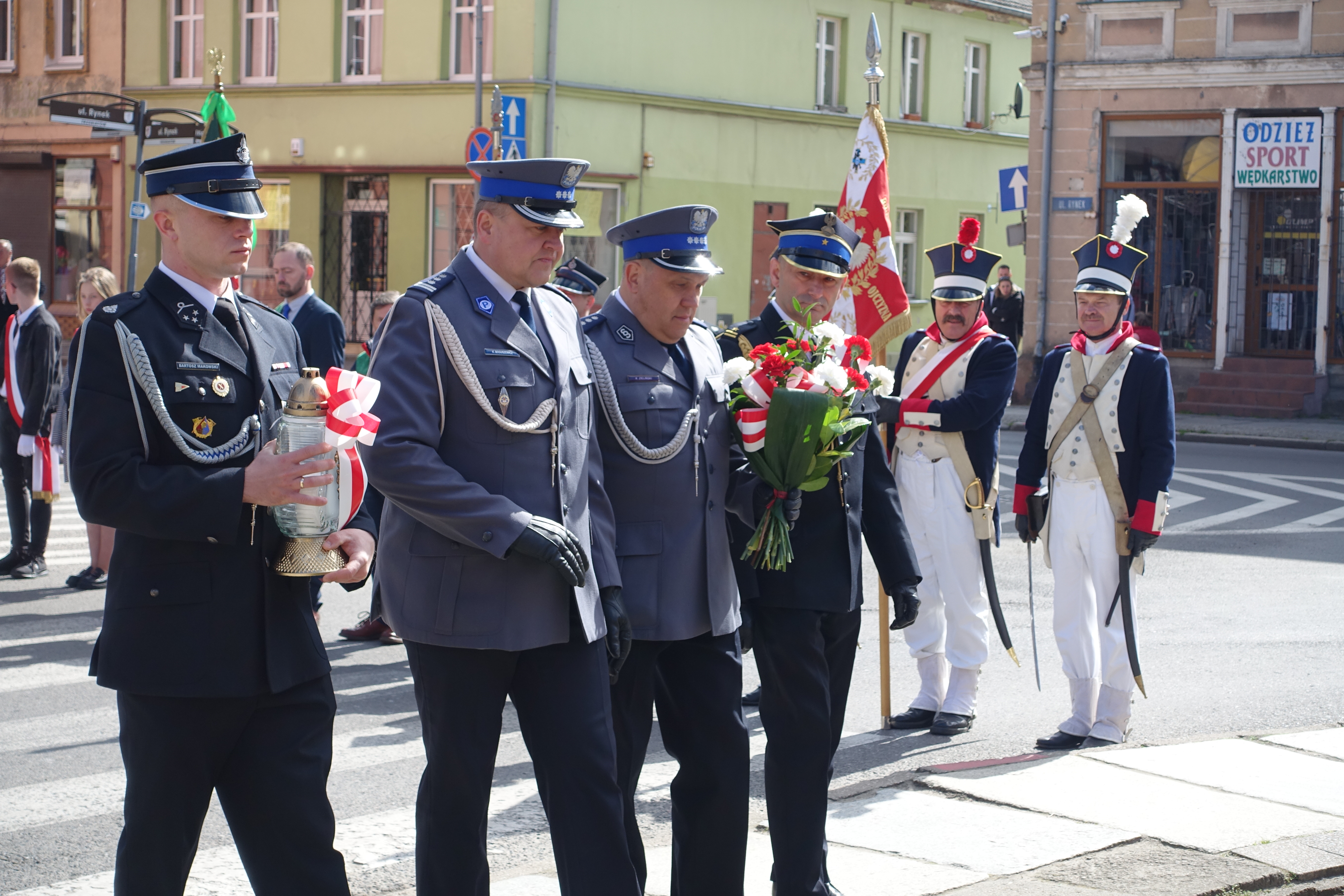 Po przemówieniach samorządowcy i zgromadzeni goście złożyli kwiaty pod „Pomnikiem w hołdzie bohaterskim żołnierzom”. Zaraz po tym uczestnicy przenieśli się pod Ratusz Miejski, gdzie złożono kwiaty pod głazem z tablicą upamiętniającą generała Stanisława Nałęcz-Komornickiego.