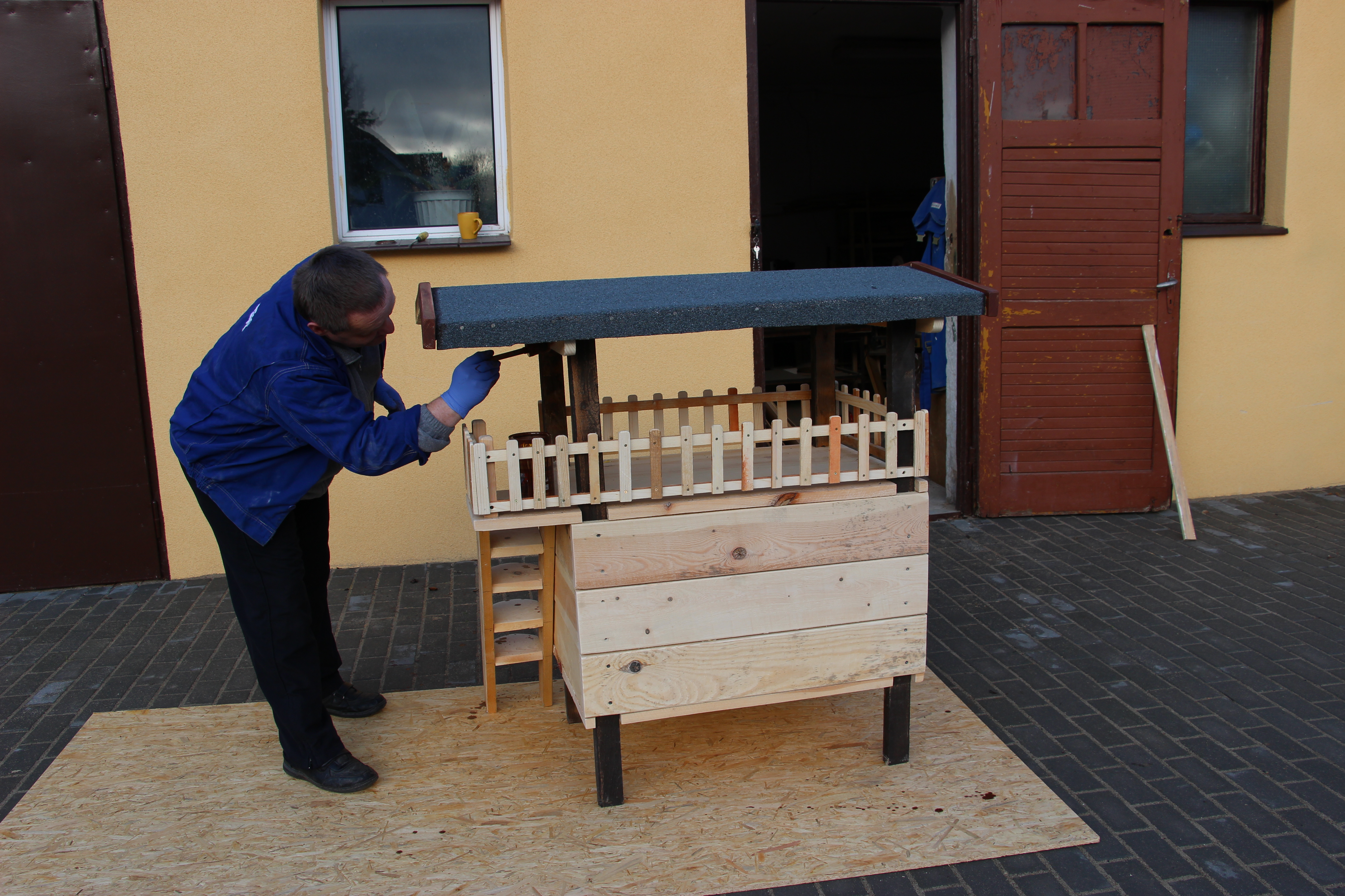 Kto tworzy kocie stołówki? Wszystko dzięki osobom z Warsztatów Terapii Zajęciowej przy ulicy Cichej w Trzebiatowie. Po dostarczeniu materiałów przez ZDGiGK Trzebiatów, uczestnicy warsztatów zgodnie z instrukcją i pod nadzorem Kazimierza Maguńskiego montują poszczególne elementy. Następnie konstrukcja zostaje pomalowana i, gdy jest już gotowa, trafia do wyznaczonych miejsc na terenie gminy Trzebiatów.