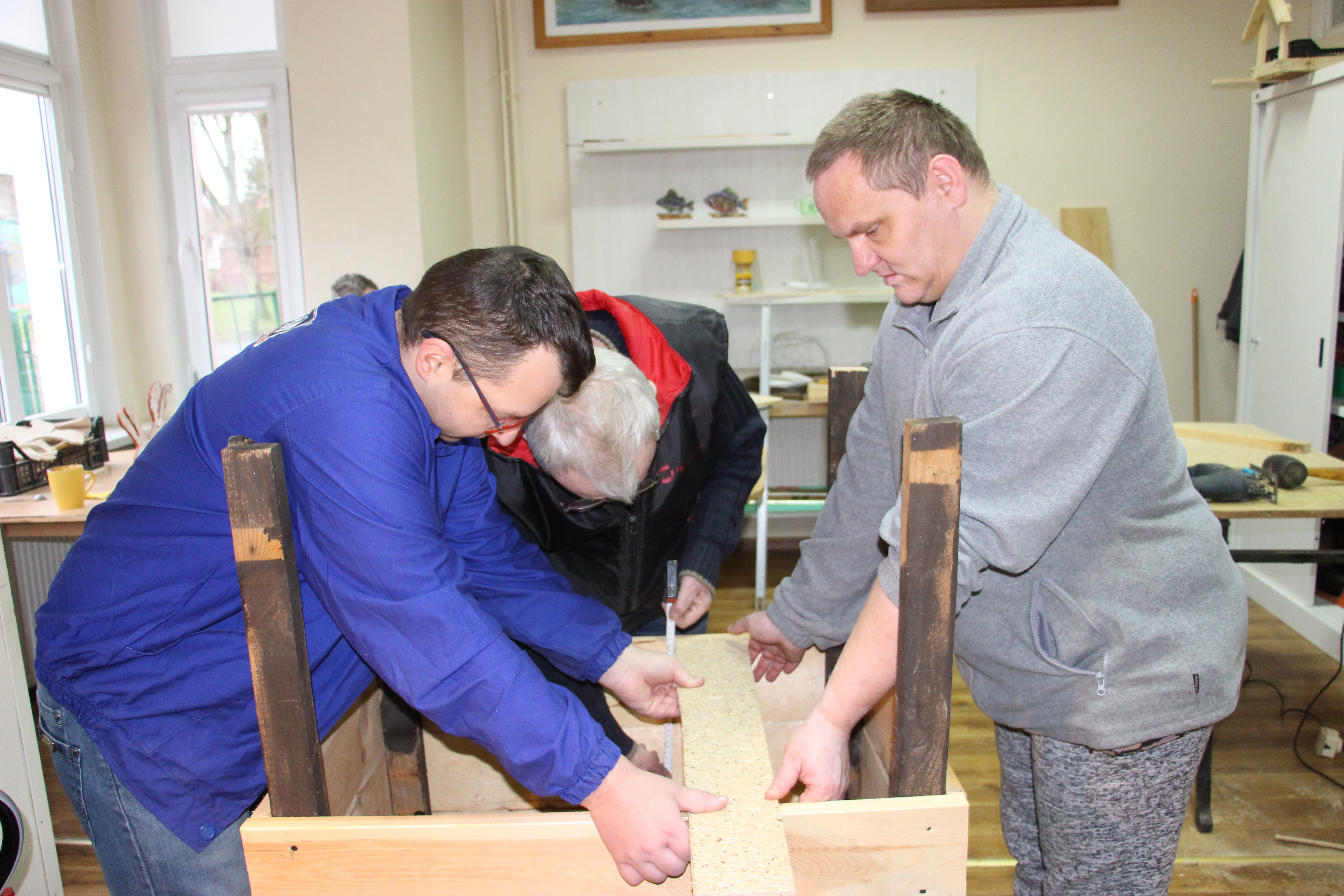 Kto tworzy kocie stołówki? Wszystko dzięki osobom z Warsztatów Terapii Zajęciowej przy ulicy Cichej w Trzebiatowie. Po dostarczeniu materiałów przez ZDGiGK Trzebiatów, uczestnicy warsztatów zgodnie z instrukcją i pod nadzorem Kazimierza Maguńskiego montują poszczególne elementy. Następnie konstrukcja zostaje pomalowana i, gdy jest już gotowa, trafia do wyznaczonych miejsc na terenie gminy Trzebiatów.