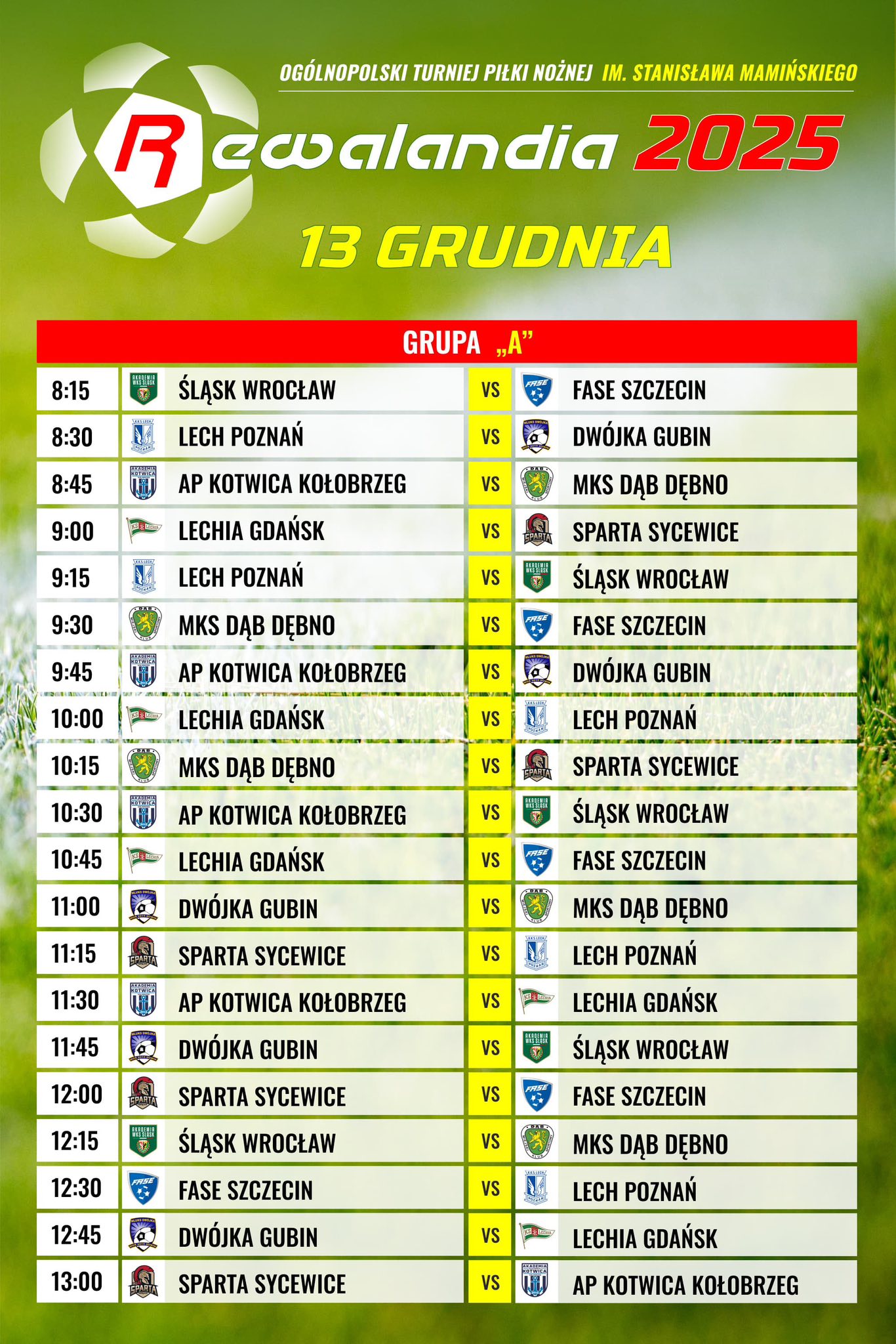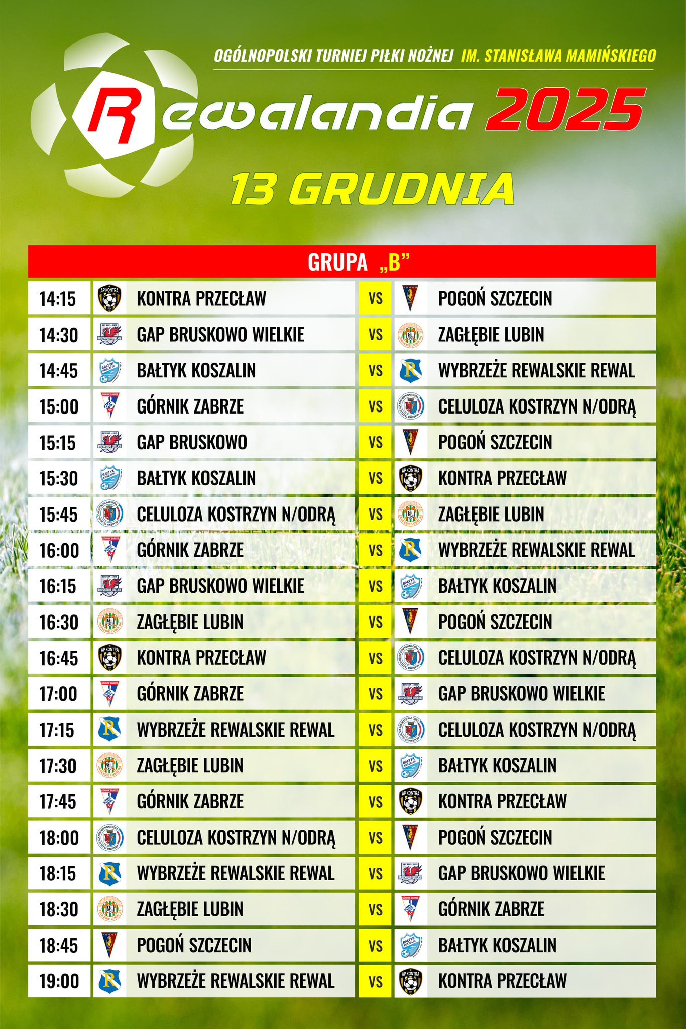 Tegoroczna, XXIV edycja Ogólnopolskiego Turnieju Piłki Nożnej imienia Stanisława Mamińskiego „Rewalandia” rozpocznie się w piątek, 12 grudnia, i potrwa przez cały weekend. Na niedzielę, 14 grudnia, zaplanowano spotkania finałowe.