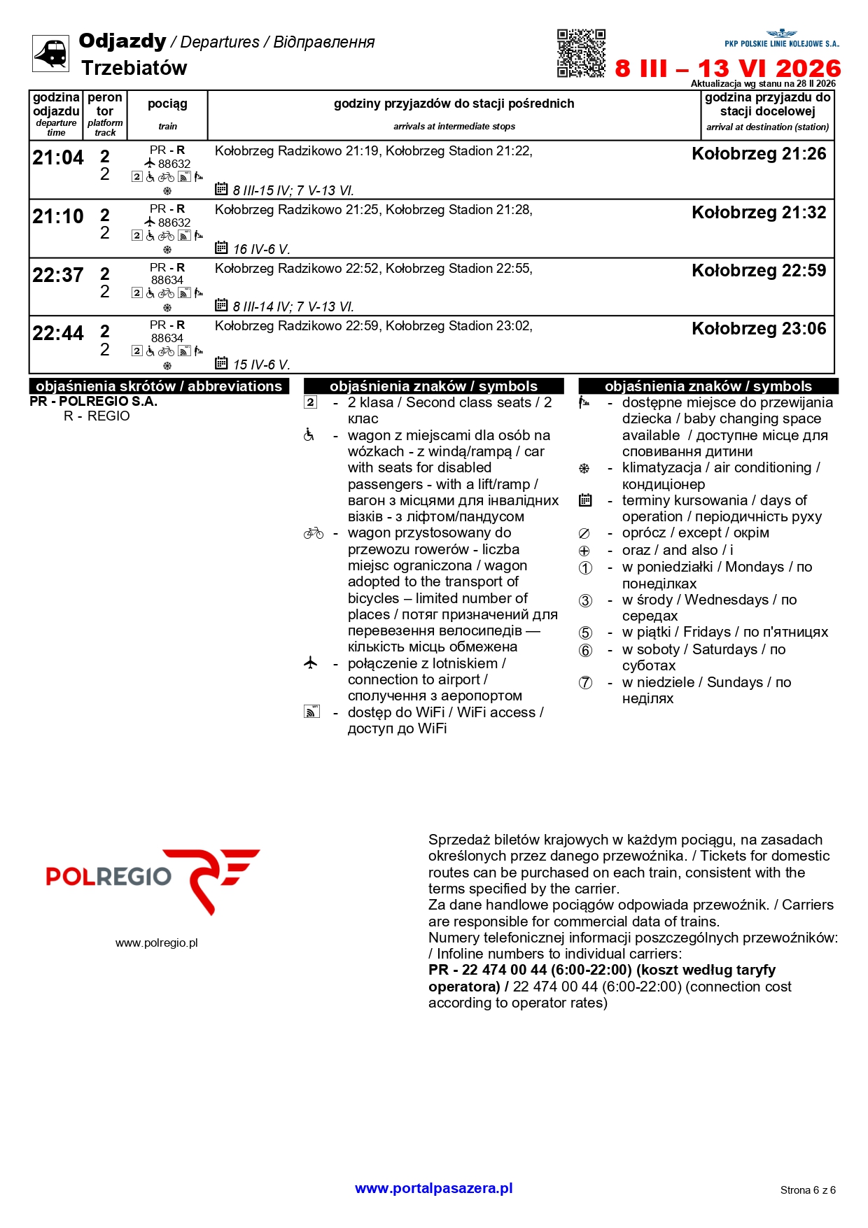 Wraz z wiosenną korektą rozkładu jazdy, która wchodzi w życie w najbliższą niedzielę, przewoźnik POLREGIO uruchomi dodatkowe połączenia na Pomorzu Zachodnim. Podróżni będą mogli skorzystać z sezonowych pociągów z Kołobrzegu lub Świnoujścia do Poznania i Zielonej Góry, które będą kursować w dniach 1-3 maja oraz 4, 6 i 7 czerwca.