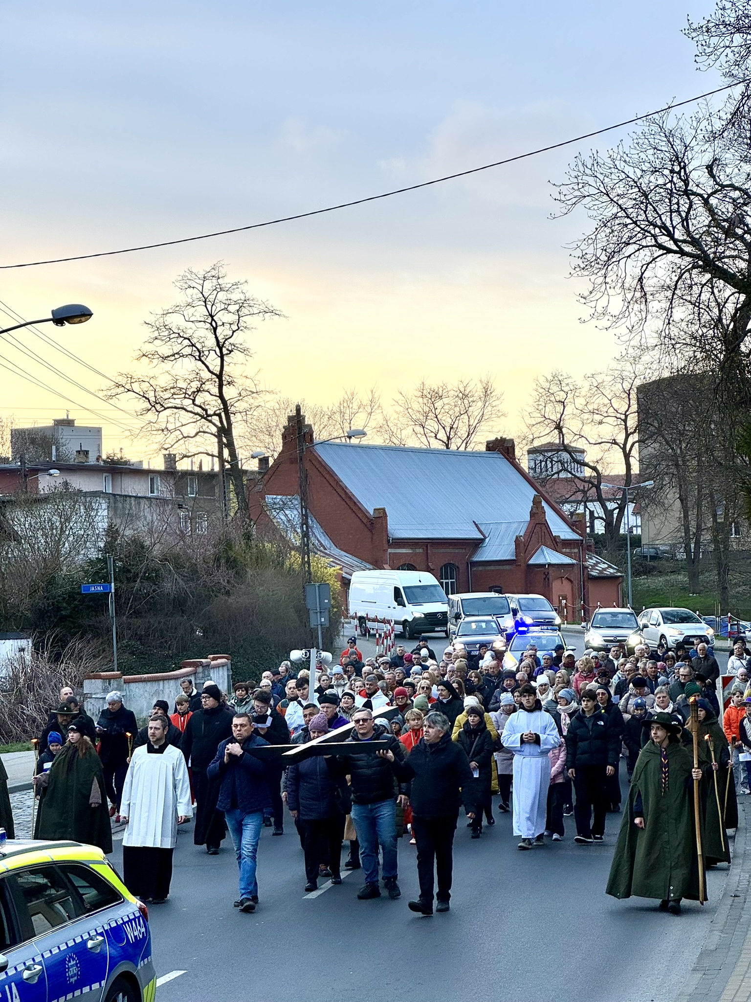 Wierni w asyście policji i harcerzy przeszli ulicami Gryfic, rozważając kolejne stacje Męki Pańskiej i dając świadectwo żywej wiary. Krzyż niesiony był przez przedstawicieli różnych grup parafialnych, młodzież, rodziny oraz duchownych. Wspólna modlitwa, śpiew i chwile ciszy stworzyły głęboką duchową atmosferę.