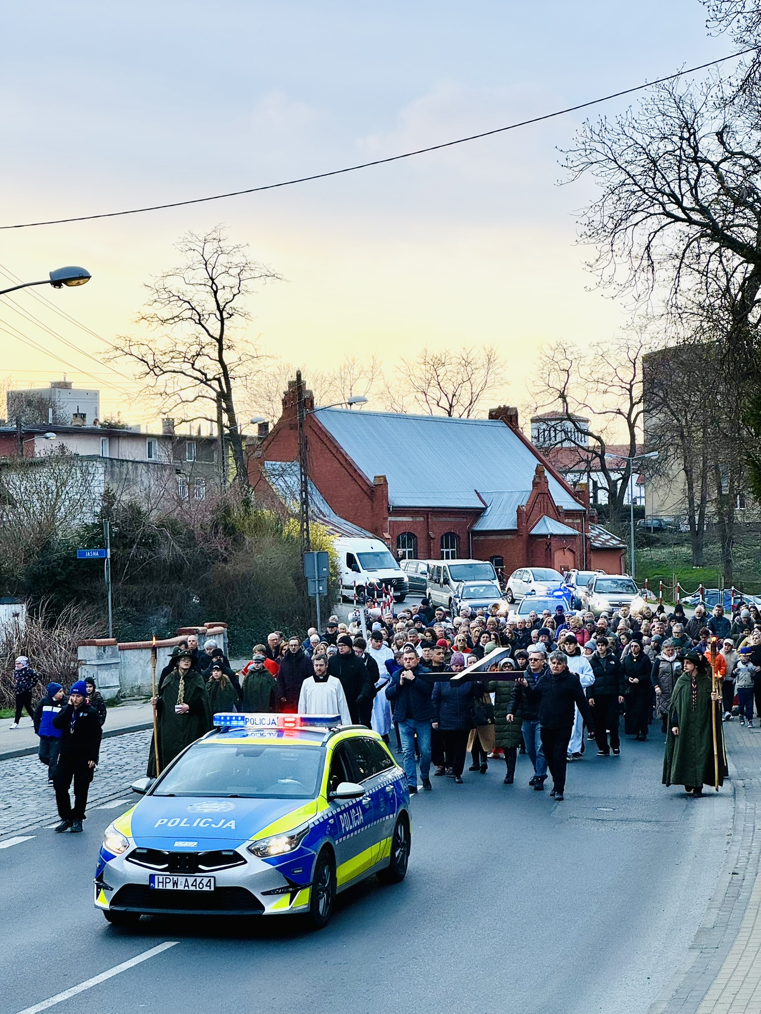 Wierni w asyście policji i harcerzy przeszli ulicami Gryfic, rozważając kolejne stacje Męki Pańskiej i dając świadectwo żywej wiary. Krzyż niesiony był przez przedstawicieli różnych grup parafialnych, młodzież, rodziny oraz duchownych. Wspólna modlitwa, śpiew i chwile ciszy stworzyły głęboką duchową atmosferę.