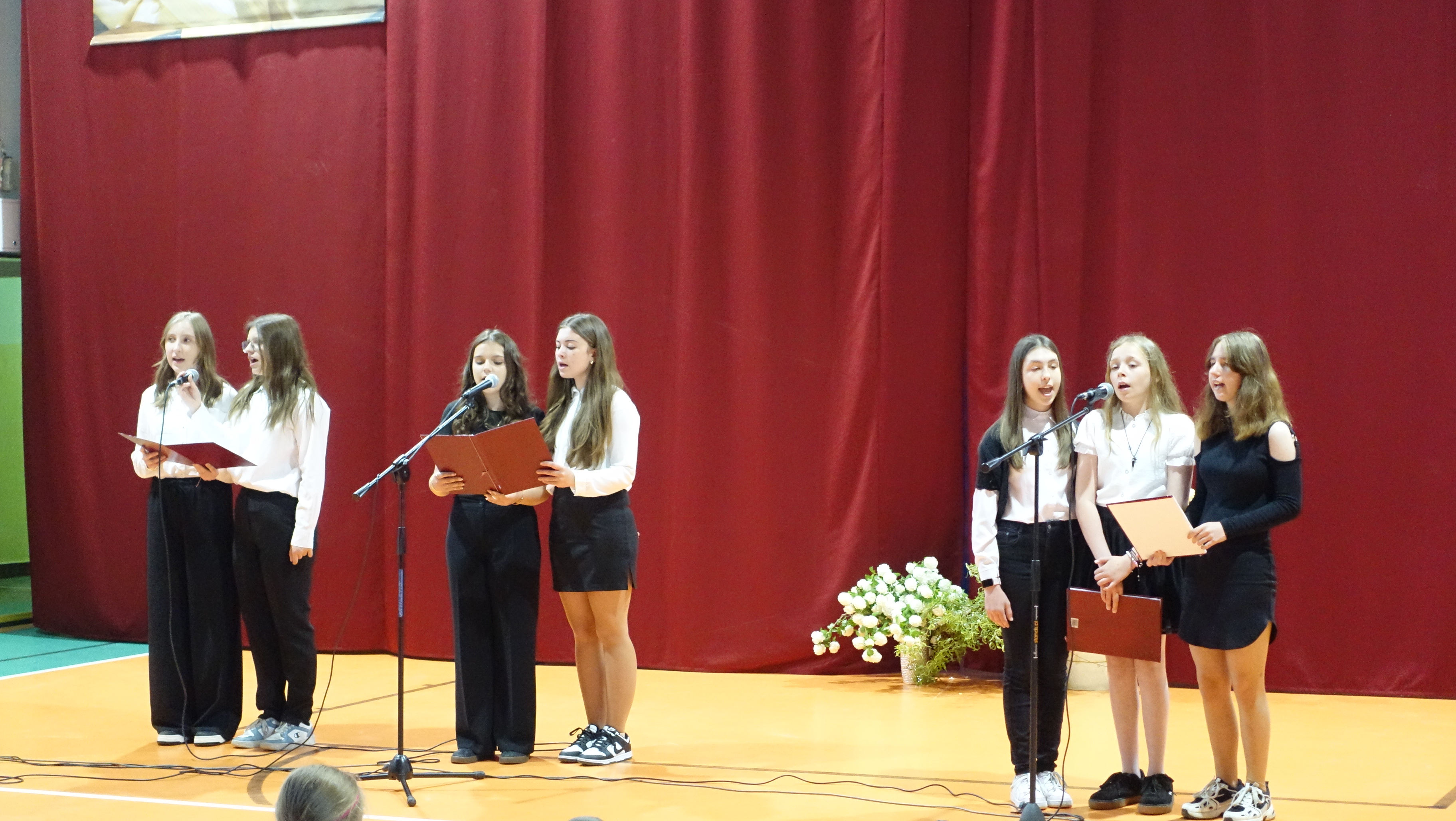 Obchody tych dwóch ważnych wydarzeń rozpoczęły się mszą świętą w kościele w Trzygłowie. Następnie w szkole odbył się uroczysty apel, podczas którego przypomniano sylwetkę św. Jana Pawła II.