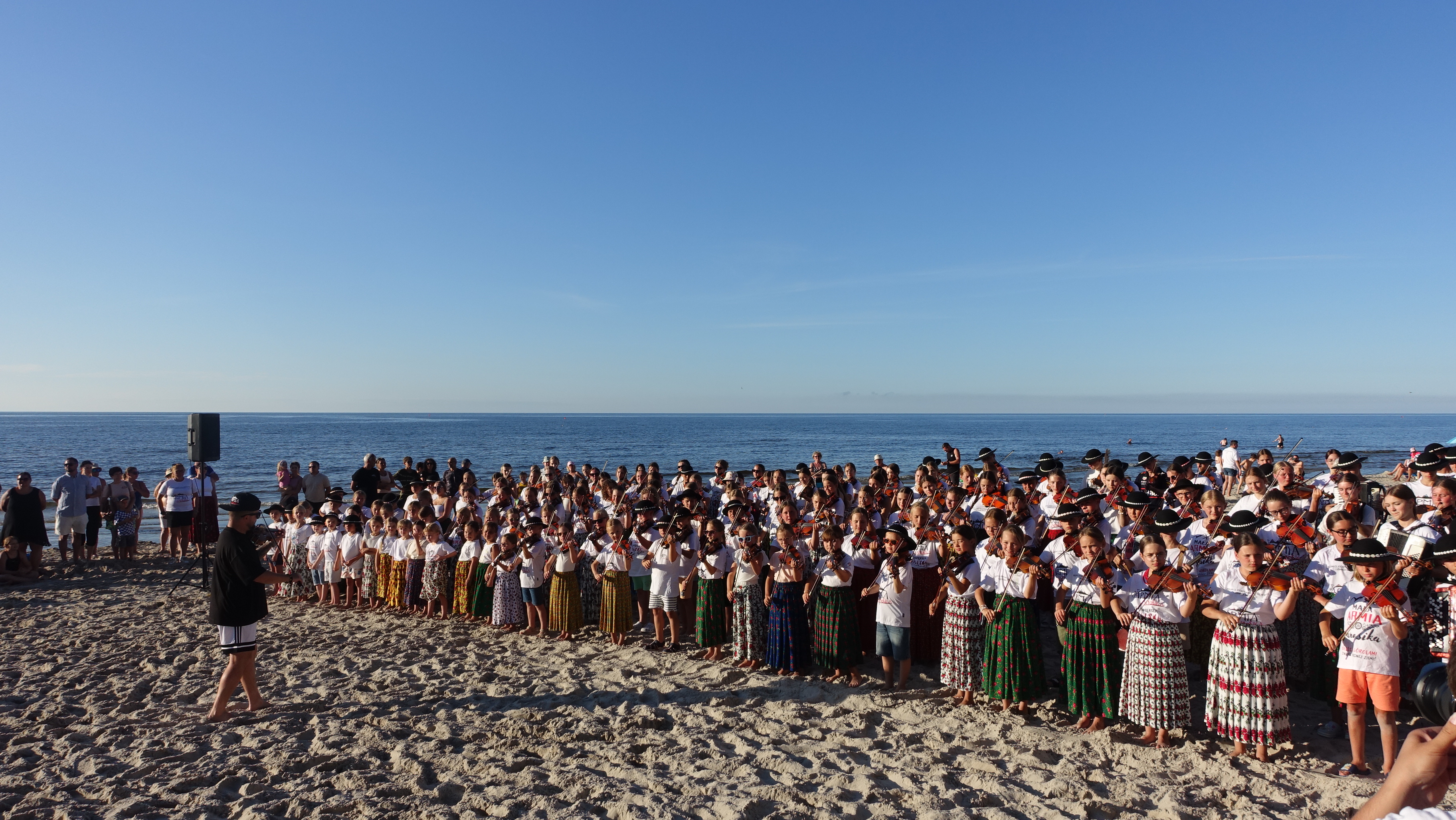 Plaża przy zejściu nr 3 zamieniła się wczoraj w plan zdjęciowy. Góralskie stroje, śpiew i dźwięki instrumentów w połączeniu z morskim krajobrazem stworzyły niecodzienny widok, który szybko przyciągnął uwagę wypoczywających turystów.