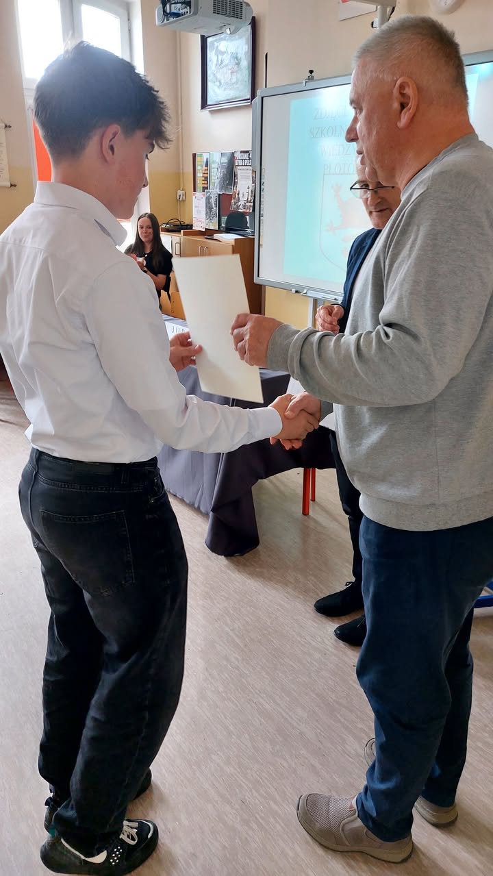 W myśl cytatu „Historia jest nauczycielką życia” w marcu uczniowie Szkoły Podstawowej nr 1 w Płotach na lekcjach historii poznawali przeszłość "Naszej małej ojczyzny". Oglądaliśmy film dokumentalny przedstawiający historię miasta w XIX i XX wieku. Przyswajaliśmy wiadomości z dostępnych stron internetowych i książki „ Płoty – dzieje miasta” wydanej w 1991 roku. Odbyliśmy wiele wycieczek pieszych do Nowego i Starego Zamku. Na podstawie tak nabytej wiedzy, wszyscy uczniowie pisali test eliminacyjny złożony z 20 pytań, o dziejach miasta i gminy Płoty. Najlepsi uczniowie z każdej klasy awansowali do finału szkolnego, który odbył się wczoraj. W finale wszyscy uczniowie odpowiadali ustnie na dowolnie przez siebie wybrane pytanie z banku kilkudziesięciu pytań. Nad prawidłowym przebiegiem konkursu czuwało Jury z Rady Samorządu Uczniowskiego i pan Karol Kuśnierz z Biblioteki Miejskiej.
