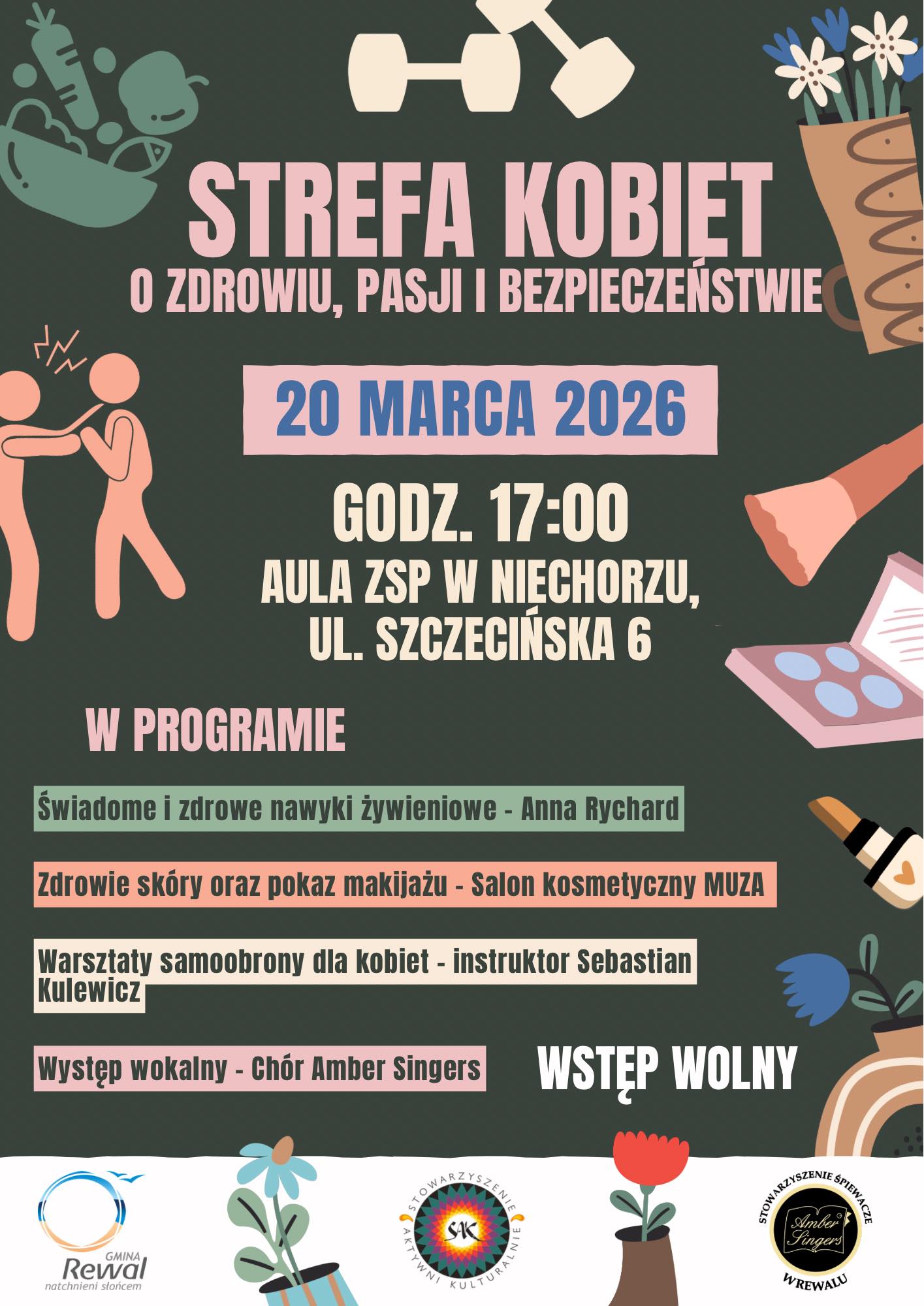 W piątek, 20 marca, o godzinie 17:00 w auli Zespołu Szkolno-Przedszkolnego w Niechorzu odbędzie się „Strefa Kobiet” – spotkanie poświęcone zdrowiu, pasjom i bezpieczeństwu. Wydarzenie skierowane jest do mieszkanek gminy oraz okolic, które chcą spędzić czas w miłej atmosferze i jednocześnie dowiedzieć się czegoś nowego.