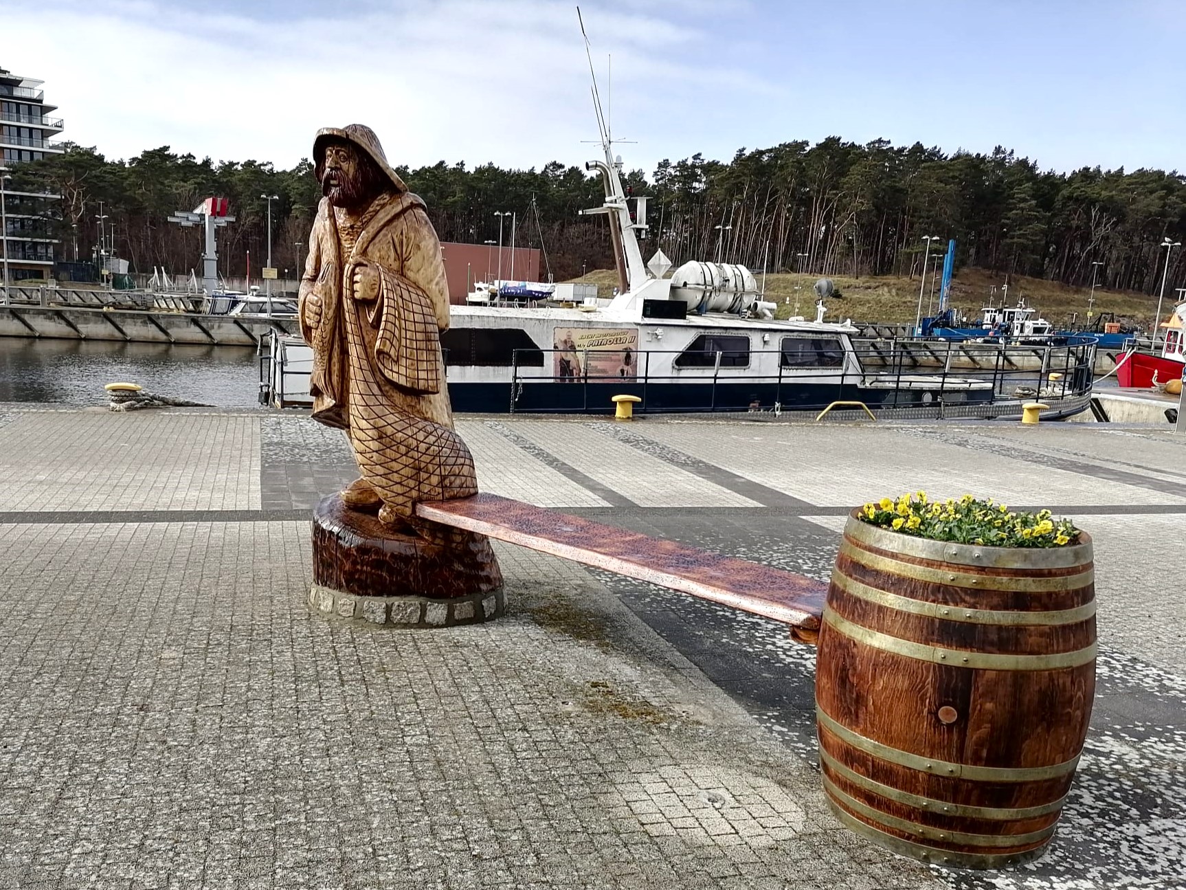 Rzeźba została już odnowiona i ustawiona w nowym miejscu – w przestrzeni portowej, gdzie wpisuje się w nadmorski charakter miejscowości.