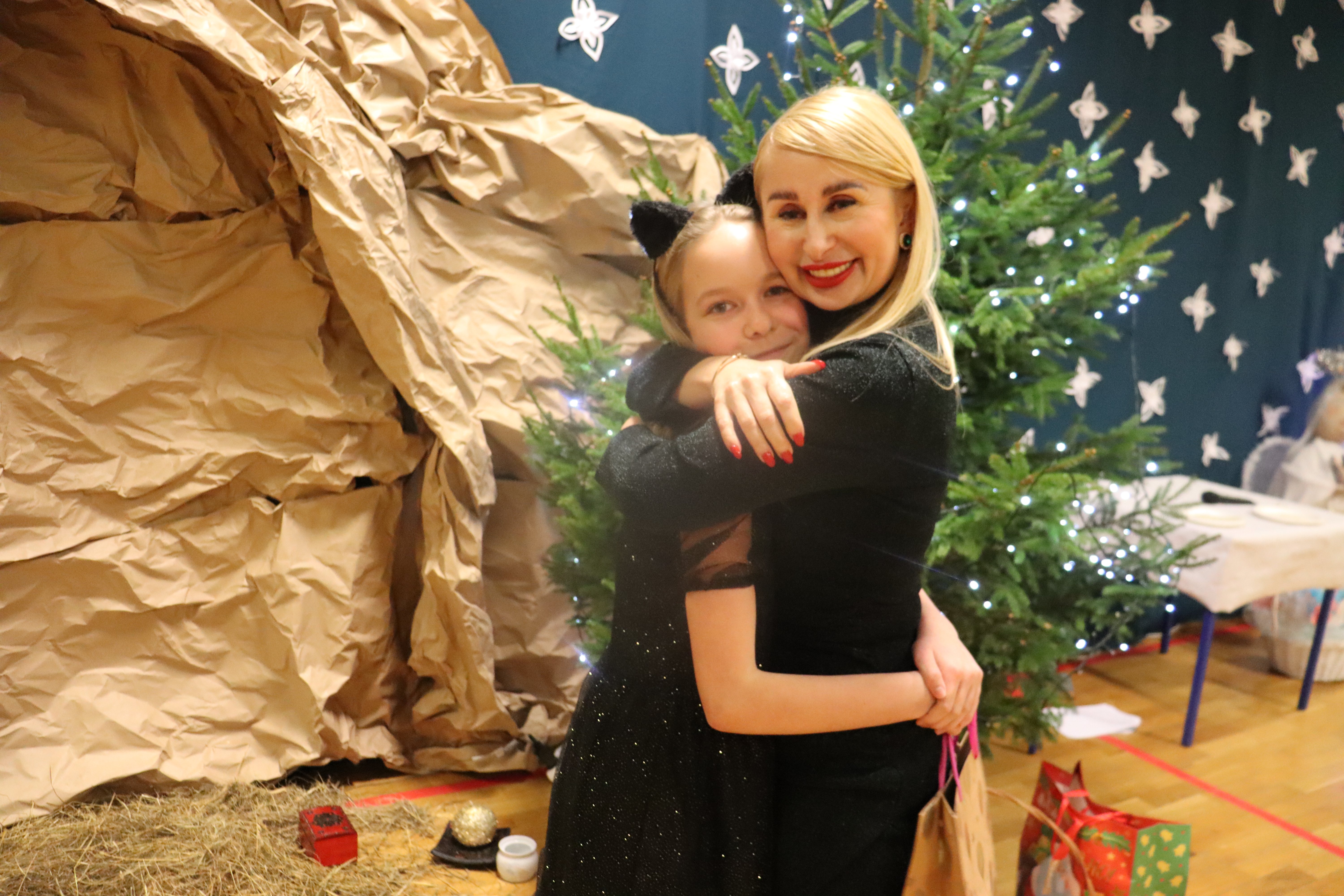 Nie inaczej było i w tym roku. Dnia 21 grudnia 2022 r., w przesyconej zapachem świerkowych gałązek sali gimnastycznej, zebrali się zaproszeni goście, uczniowie, rodzice oraz nauczyciele i pracownicy szkoły. Od razu dało się zauważyć niezwykle urokliwą scenografię, która wprowadziła publiczność w magiczną, świąteczną atmosferę. Wszyscy patrzyliśmy z zachwytem na wspaniałą grotę wykonaną z szarego papieru, dzięki której przenieśliśmy się do dawnego Betlejem!
