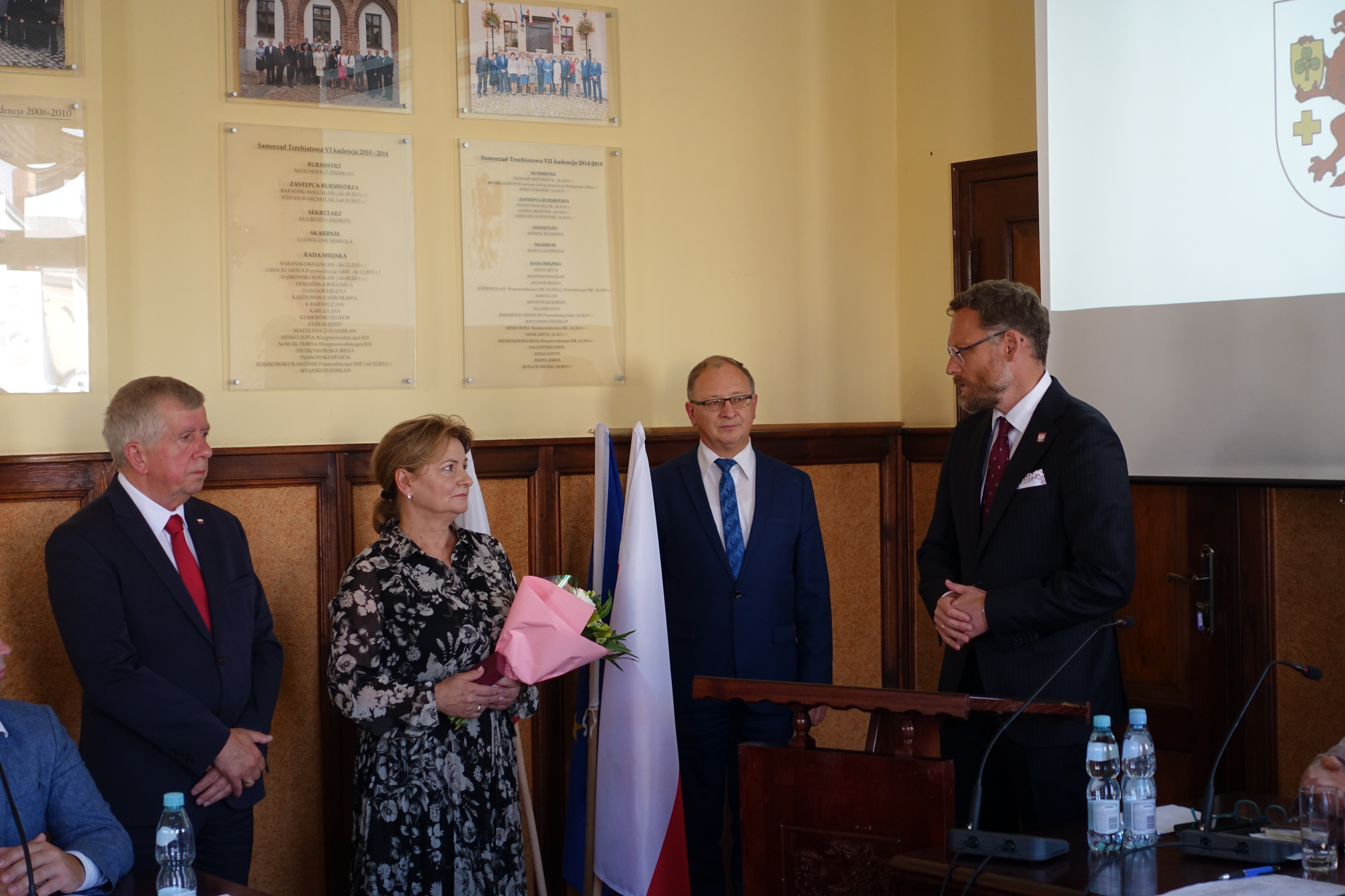 Dzisiaj podczas obrad sesji Rady Miejskiej w Trzebiatowie miało miejsce uroczyste wręczenie honorowego odznaczenia śp. Bogusławowi Barańskiemu. Srebrny Krzyż Zasługi w imieniu Prezydenta RP wręczyli żonie uhonorowanego Wojewoda Zachodniopomorski Zbigniew Bogucki oraz Poseł na Sejm Michał Jach.