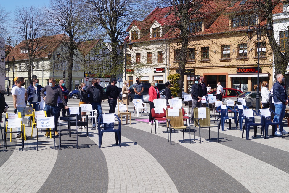 Właściciele hoteli, restauracji, salonów fryzjerskich i innych branż, które z powodu epidemii COVID-19 od ponad miesiąca nie mogą prowadzić swojej działalności, przyjechali do Gryfic. Na Placu Zwycięstwa, podobnie jak wcześniej w swoich miastach przedsiębiorcy zza Odry, ustawili puste krzesła z nazwami swoich firm. Pojawili się tutaj, bo jak mówią niewiedza, w jakiej żyją, jest zabijająca. Wspólnie apelowali o jasne wytyczne, dzięki, którym dowiedzą się wreszcie, kiedy i na jakich warunkach będą mogli zacząć zarabiać i normalnie żyć.