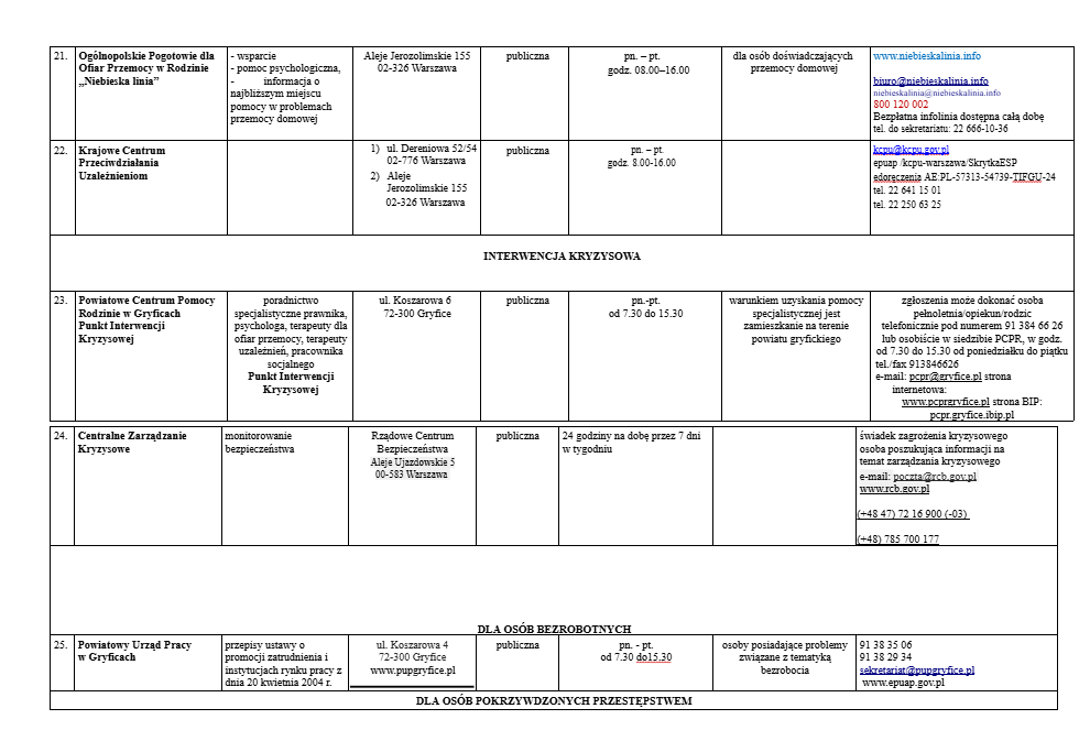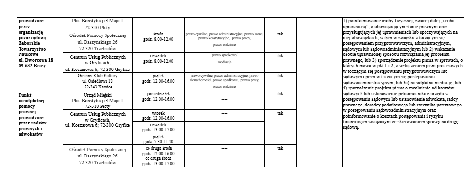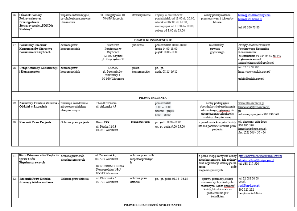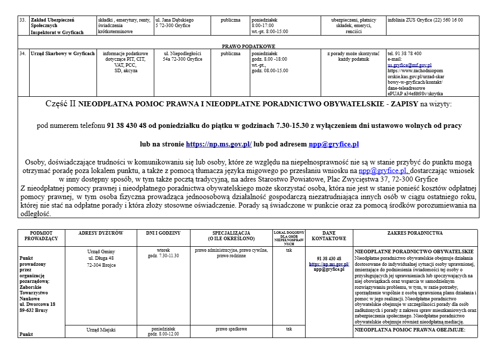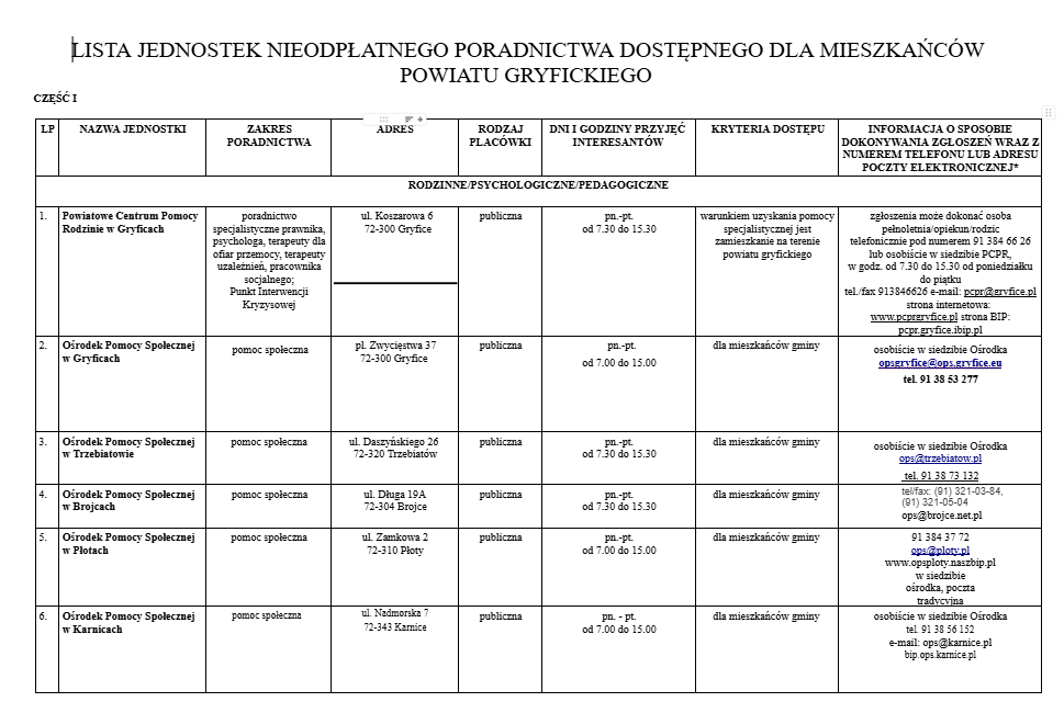 Lista jednostek nieodpłatnego poradnictwa dostępnego dla mieszkańców powiatu gryfickiego.