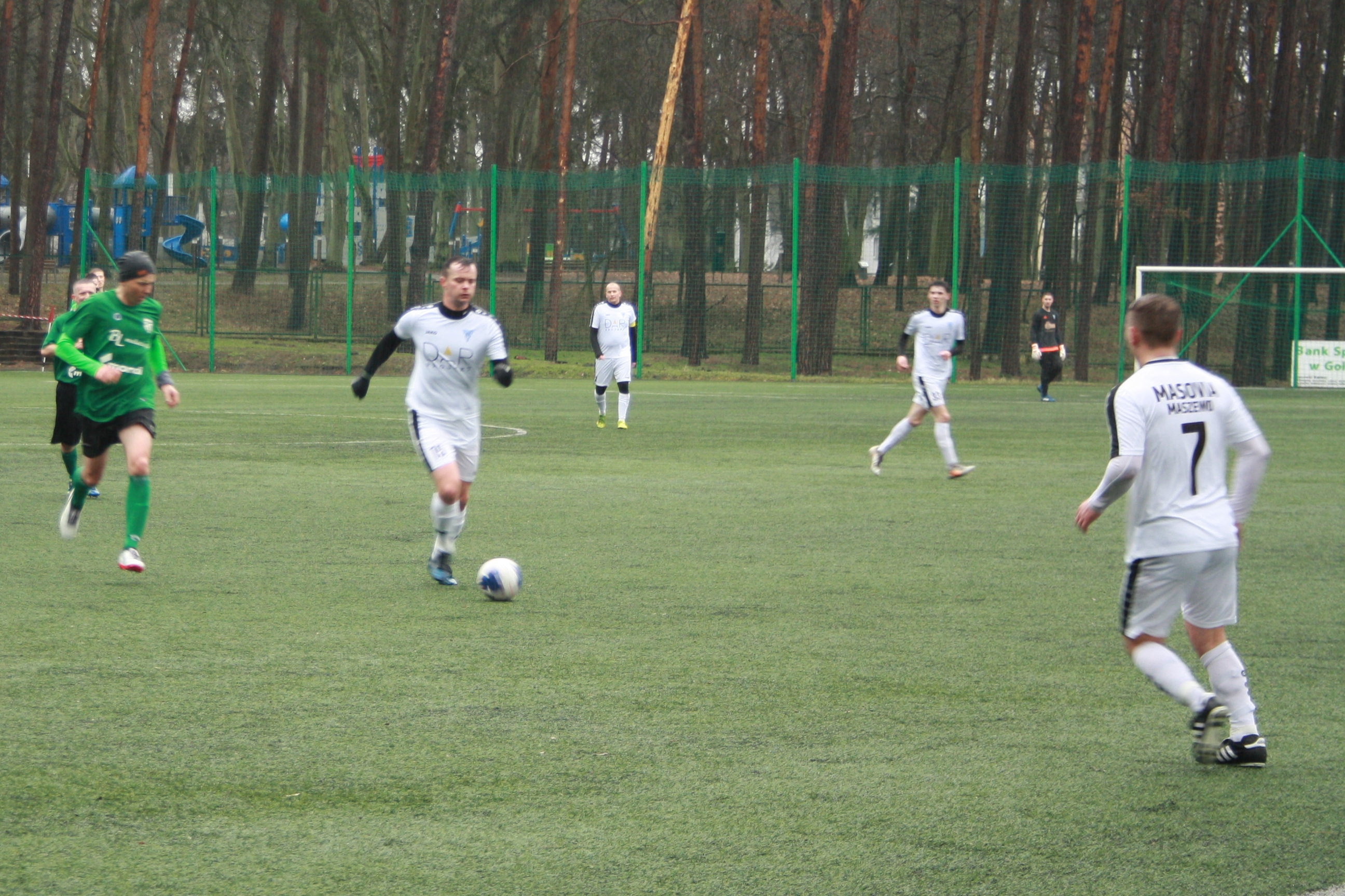 Niespodzianka w derbowym meczu na otwarcie rundy wiosennej. W Goleniowie lider rozgrywek Masovia zremisowała z Leśnikiem 2:2, mimo że dwukrotnie wychodziła na prowadzenie. Do przerwy maszewiacy prowadzili 1:0 po golu Kubiaka. W 63 minucie do remisu doprowadził Bobryk. Wkrótce jednak liderująca w tabeli Masovia ponownie wyszła na prowadzenie. Dośrodkowywał Olszewski, a piłkę głową do siatki skierował Kubiak, drugi raz wpisując się na listę strzelców. Leśnik nie złożył jednak broni, grał ambitnie i walecznie doprowadzając wkrótce do wyrównania po ładnej akcji Rybaka. Mecz zakończył się podziałem punktów, po którym Masovia spadła na drugie miejsce w tabeli, Leśnik zaś zajmuje dziewiątą pozycję.
