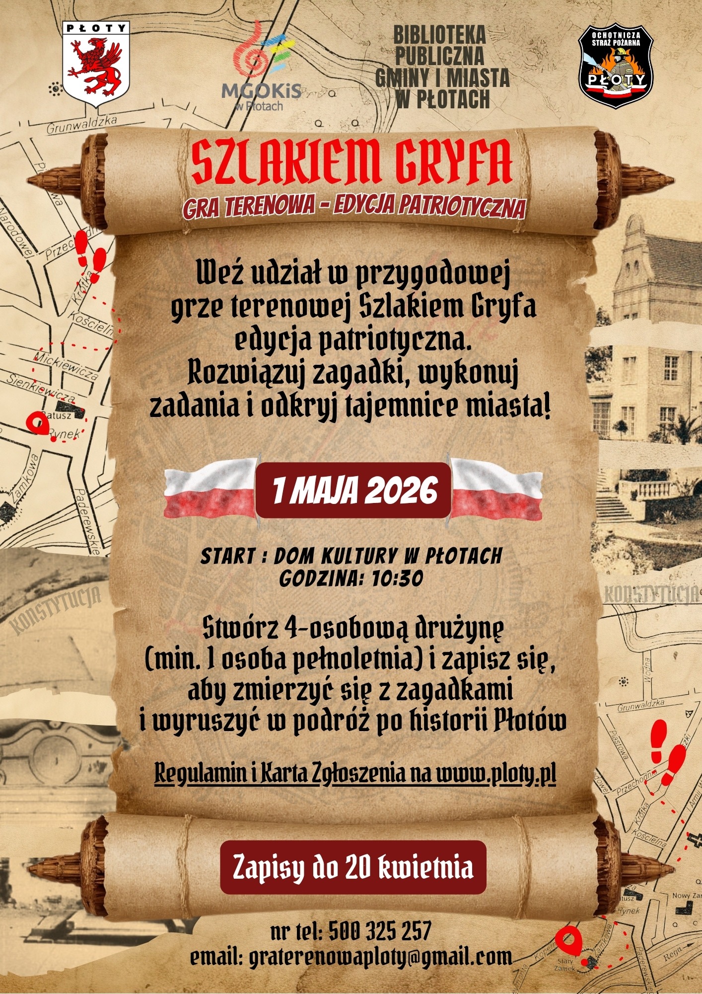 To jednak nie wszystko. Tego samego dnia odbędzie się również gra terenowa „Szlakiem Gryfa”. Uczestnicy w czteroosobowych drużynach (z udziałem co najmniej jednej osoby dorosłej) będą mogli zmierzyć się z zagadkami i zadaniami związanymi z historią miasta. Start gry zaplanowano na godzinę 10:30 przy Domu Kultury w Płotach, a zapisy trwają do 20 kwietnia.