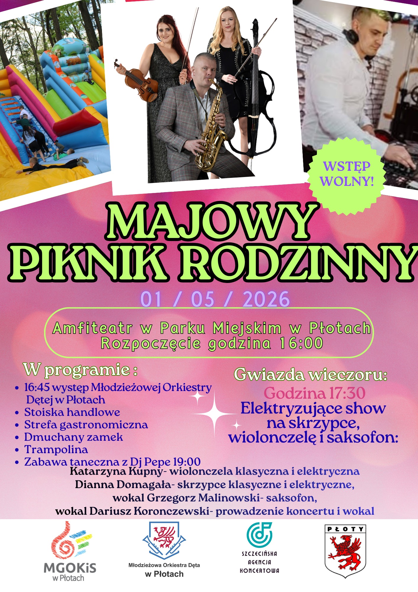 Jednym z głównych punktów programu będzie koncert zaplanowany na godzinę 17:30. Na scenie pojawią się artyści ze Szczecińskiej Agencji Koncertowej, którzy zaprezentują „Elektryczne show na skrzypce, wiolonczelę i saksofon” – połączenie klasyki z nowoczesnym brzmieniem. Wieczorem, od godziny 19:00, zaplanowano zabawę taneczną z DJ Pepe.