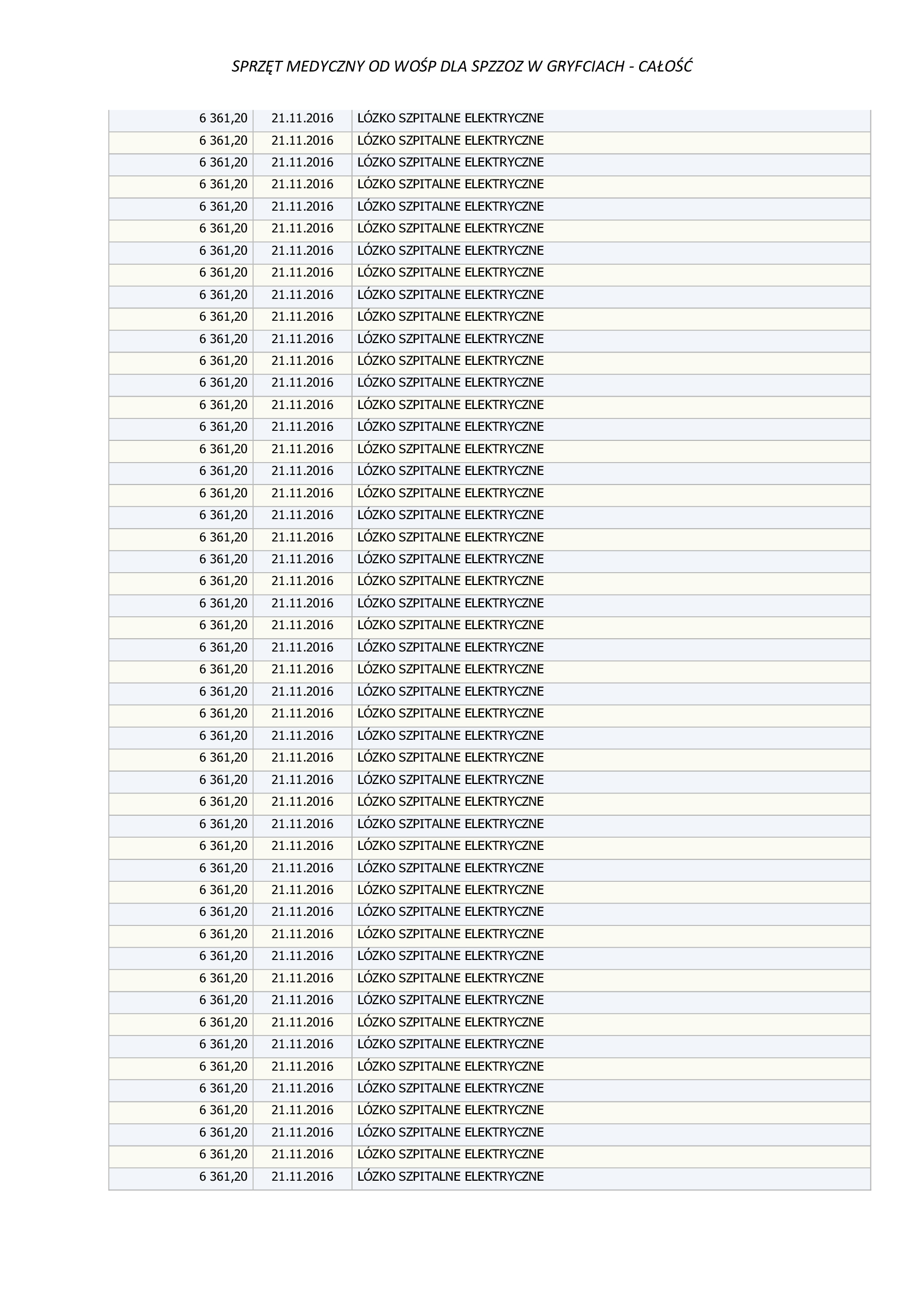 Lista zakupów robi wrażenie. Dzięki wsparciu WOŚP gryficki szpital został wyposażony m.in. w nowoczesne łóżka szpitalne (również elektryczne), sprzęt do resuscytacji, respiratory, monitory parametrów życiowych, aparaty EKG, pulsoksymetry, wagi noworodkowe, ogrzewacze dla noworodków, a także specjalistyczne urządzenia wykorzystywane w diagnostyce laboratoryjnej, takie jak systemy do identyfikacji drobnoustrojów, testy PCR czy zaawansowane analizatory. W ostatnich latach do placówki trafiły również aparaty wspierające leczenie pacjentów z niewydolnością oddechową.