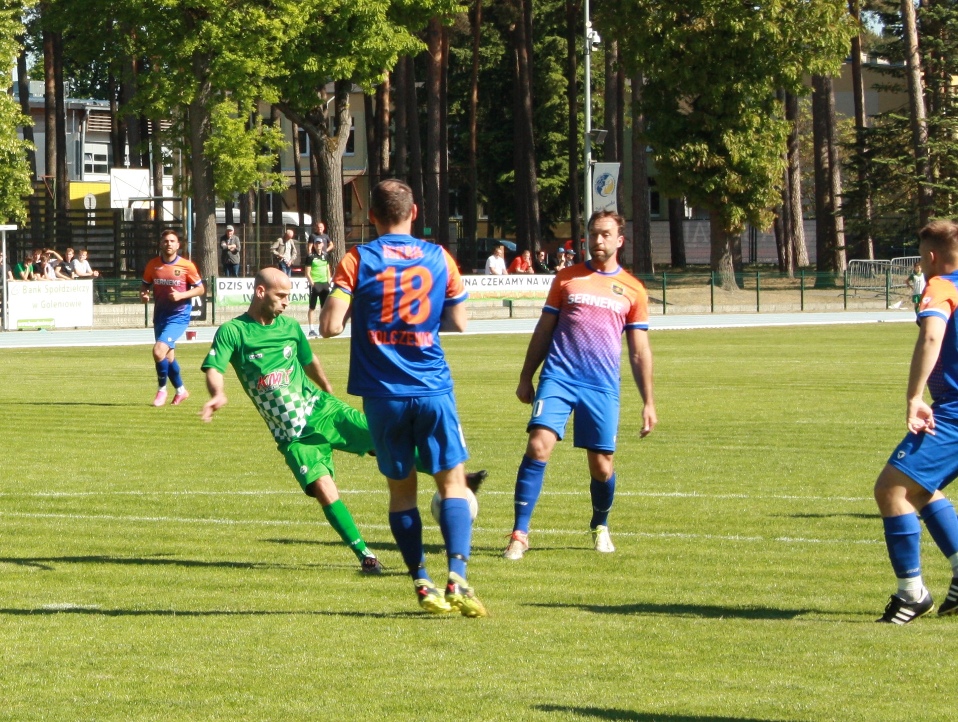 W sobotnie popołudnie biało-zieloni podejmowali Iskrę Golczewo. Jeszcze przed pierwszym gwizdkiem okazało się, że Ina może świętować awans. Stało się tak, gdyż jej najgroźniejszy rywal Gryf Kamień Pomorski przegrał w Gryficach z tamtejszą Spartą 1:3. Podopiecznym Mariusza Bernacha przyszło przypieczętować ten awans zwycięstwem w konfrontacji z Iskrą.