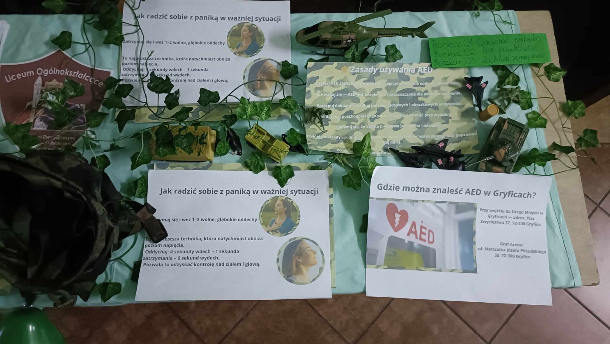 W ramach działań uczniowie organizują spotkania i stoiska edukacyjne poświęcone obronie cywilnej oraz bezpieczeństwu. Podczas jednego z ostatnich wydarzeń przygotowali punkt informacyjny, gdzie można było dowiedzieć się m.in. jak reagować w sytuacjach kryzysowych, co powinno znaleźć się w plecaku bezpieczeństwa oraz gdzie szukać schronienia w razie zagrożenia.