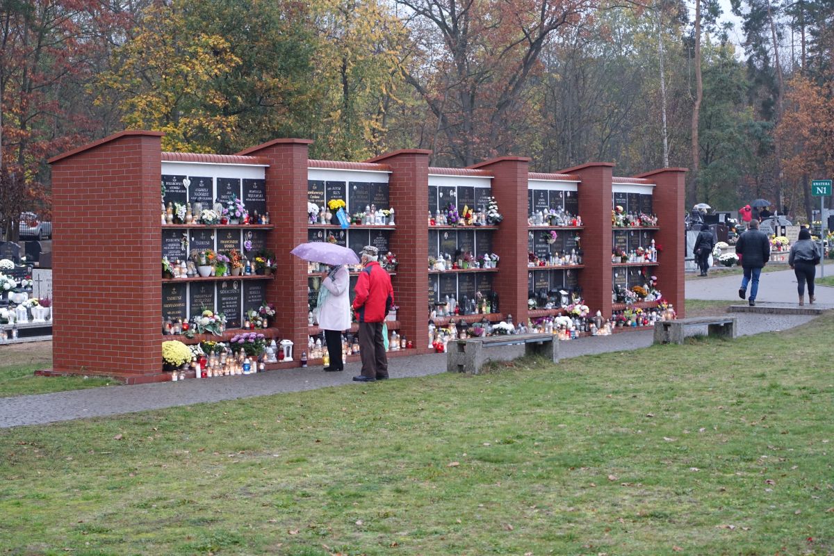 Pogoda spacerom szczególnie nie sprzyja, na terenie goleniowskiej nekropolii jak co roku - z wyjątkiem 2020 roku, gdy ze względu na zagrożenie Covid-19 została ona zamknięta - widać jednak mnóstwo osób, które ustawiają na grobach znicze oraz kwiaty (głównie chryzantemy), często zmawiają też modlitwę. O swoich zmarłych bliskich po prostu pamiętamy.