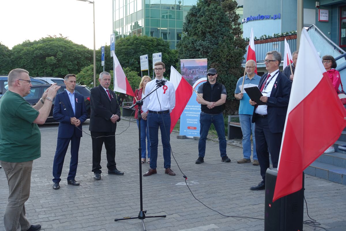 W demonstracji tej wzięły udział osoby związane ze środowiskiem prawicowo - wolnościowym, poprowadził ją szef lokalnych struktur Konfederacji, Marcin Sowiński. Zwracał on uwagę na to, że magistrat nie jest prywatną własnością Roberta Krupowicza, urząd nie jest instytucją ukraińską, w związku z tym flaga innego niż Polska państwa nie powinna na nim powiewać, a skarga w tej sprawie skierowana zostanie do Ministra Spraw Wewnętrznych i Administracji.