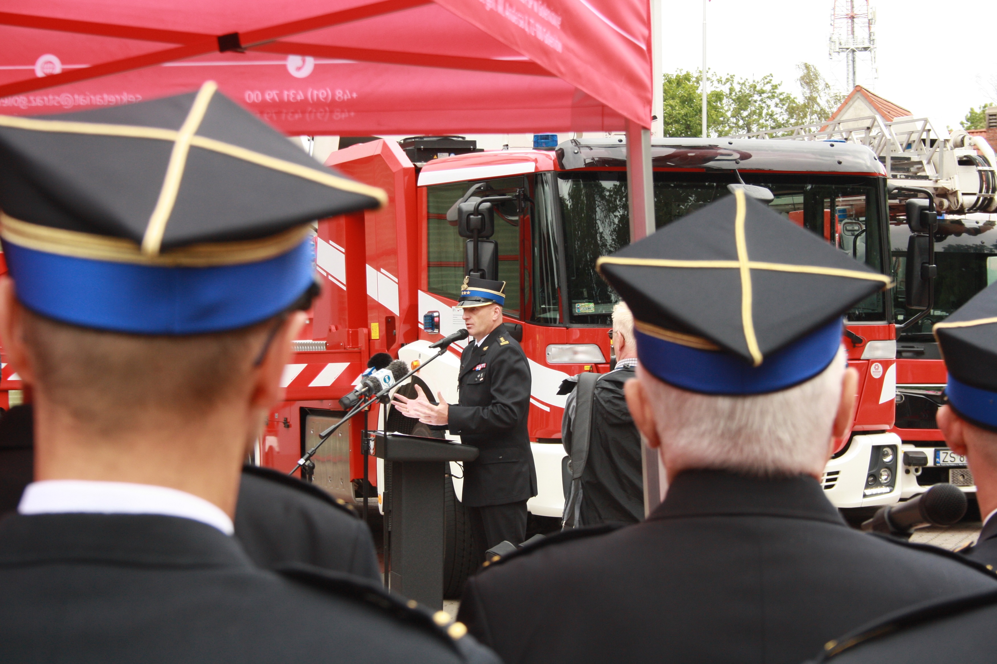 Zobaczcie zdjęcia z dzisiejszej uroczystości przekazania goleniowskim strażakom samochodu z podnośnikiem hydraulicznym o wysokości ratowniczej 42 m.