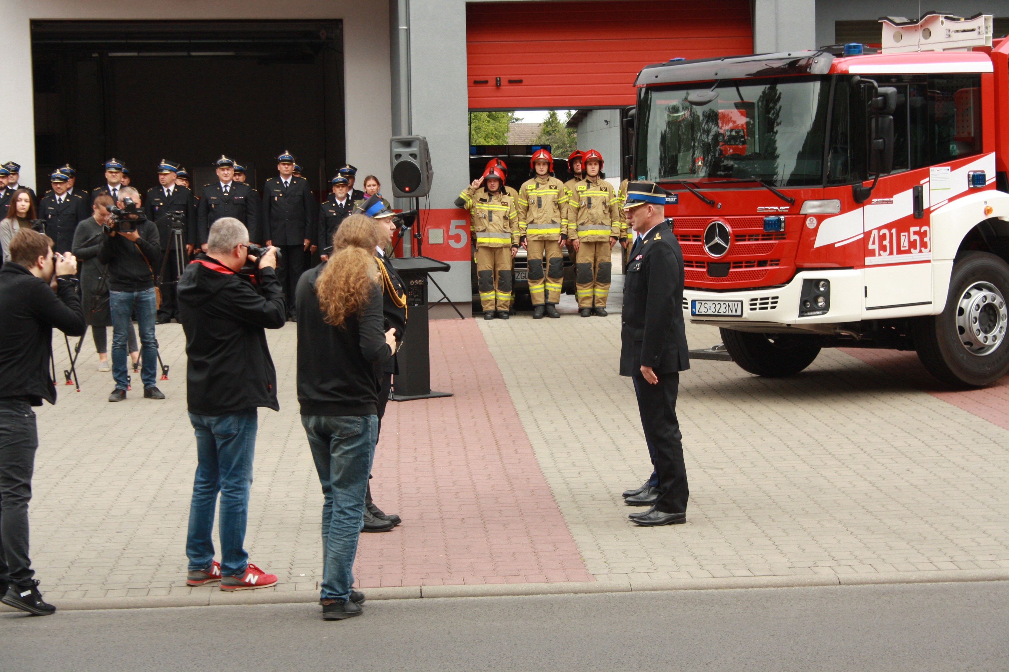 Zobaczcie zdjęcia z dzisiejszej uroczystości przekazania goleniowskim strażakom samochodu z podnośnikiem hydraulicznym o wysokości ratowniczej 42 m.