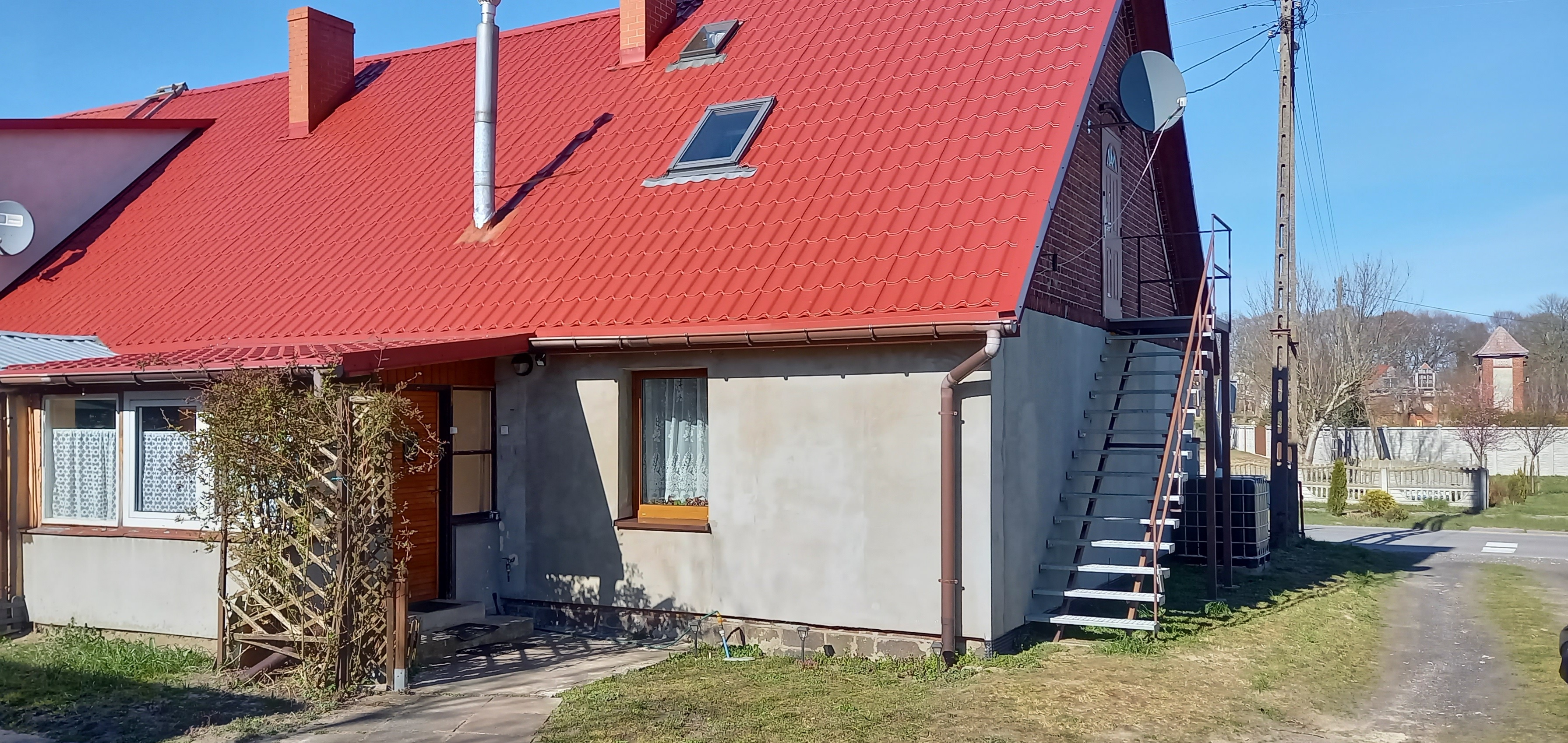 Sprzedam dom w zabudowie szeregowej oraz działkę do niego przynależącą o powierzchni 15 arów. Dodatkowo jest jeszcze działka rolna o powierzchni 2200m2 (osobna oferta). Dom jest po remoncie, zadbany i wyposażony w piec gazowy. Dom to kuchnia, dwa pokoje, ganek, garderoba, łazienka, łącznie o powierzchni 72m2 oraz góra-poddasze użytkowe, gdzie są dwa pokoje, łazienka oraz miejsce na małą kuchnię. W ofercie wliczony jest garaż wolnostojący. Dom znajduje się 3km od plaży-Rewal.