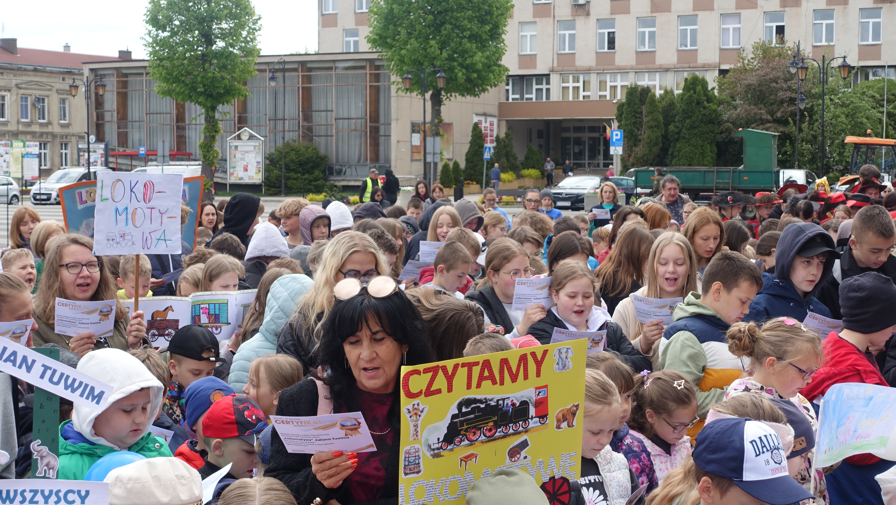 - W związku z tym, że w maju przypada Ogólnopolski Dzień Bibliotekarza i Bibliotek zawsze staramy się wymyślić jakąś inicjatywę dla naszych mieszkańców. Dlatego też, dziś na Placu Zwycięstwa bijemy rekord Polski w czytaniu „Lokomotywy” Juliana Tuwima – mówi w rozmowie z naszym reporterem Przemysław Kubalica, dyrektor Miejskiej Biblioteki Publicznej w Gryficach.