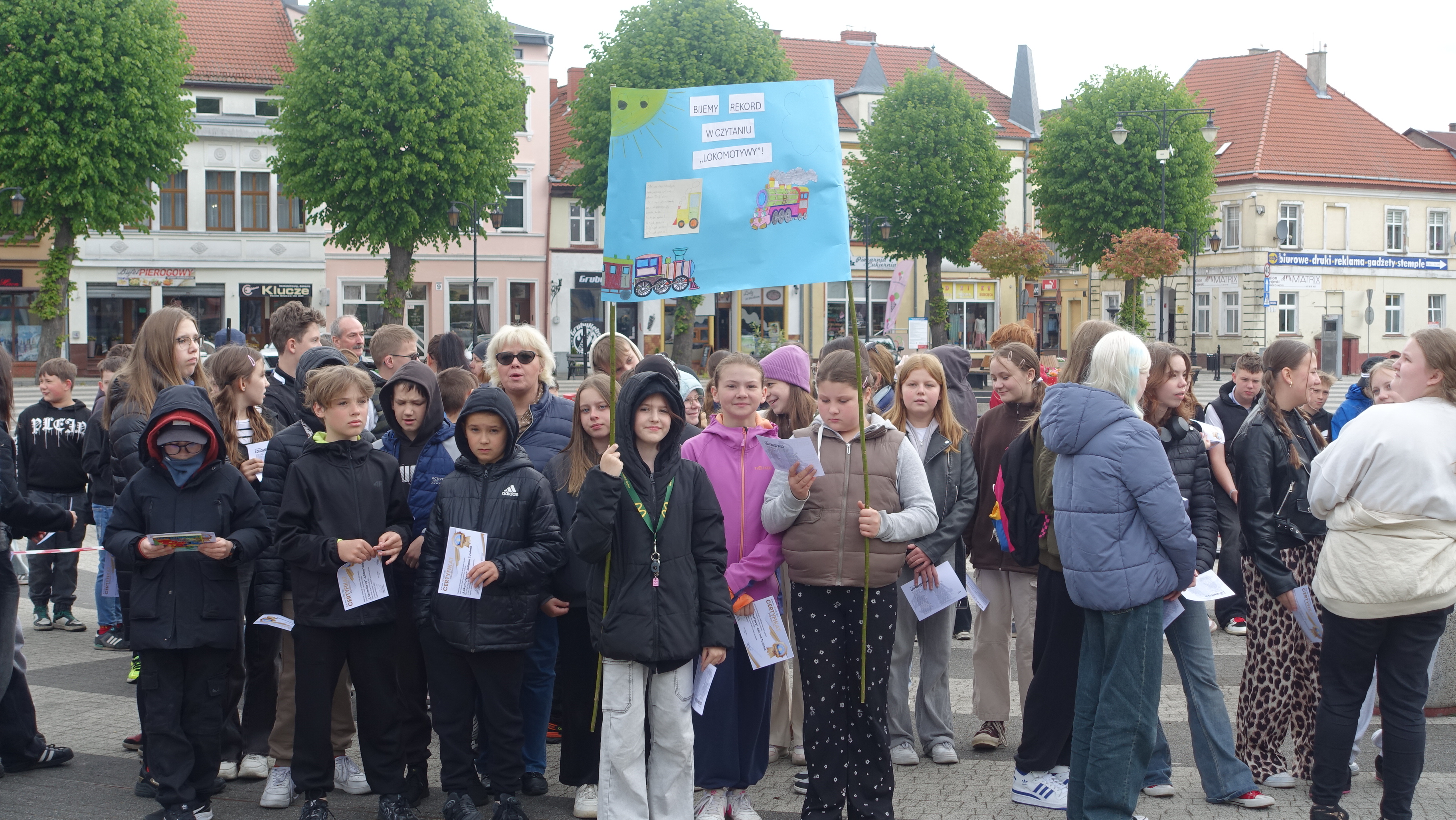 - W związku z tym, że w maju przypada Ogólnopolski Dzień Bibliotekarza i Bibliotek zawsze staramy się wymyślić jakąś inicjatywę dla naszych mieszkańców. Dlatego też, dziś na Placu Zwycięstwa bijemy rekord Polski w czytaniu „Lokomotywy” Juliana Tuwima – mówi w rozmowie z naszym reporterem Przemysław Kubalica, dyrektor Miejskiej Biblioteki Publicznej w Gryficach.